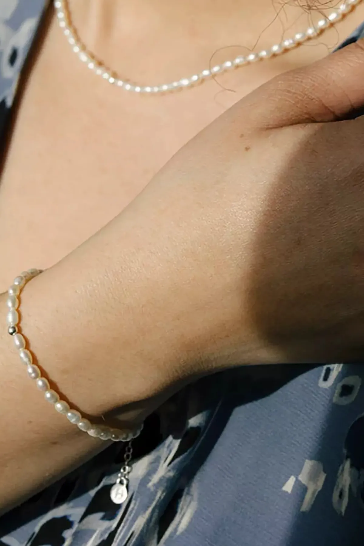 Zeitlos-elegantes Armband mit schimmernden Süßwasserperlen und einer einzelnen Detail-Perle aus recyceltem Silber. Ein hübsches Schmuckstück, das du zu vielen Gelegenheiten tragen kannst, auch ideal als kleines Geschenk.