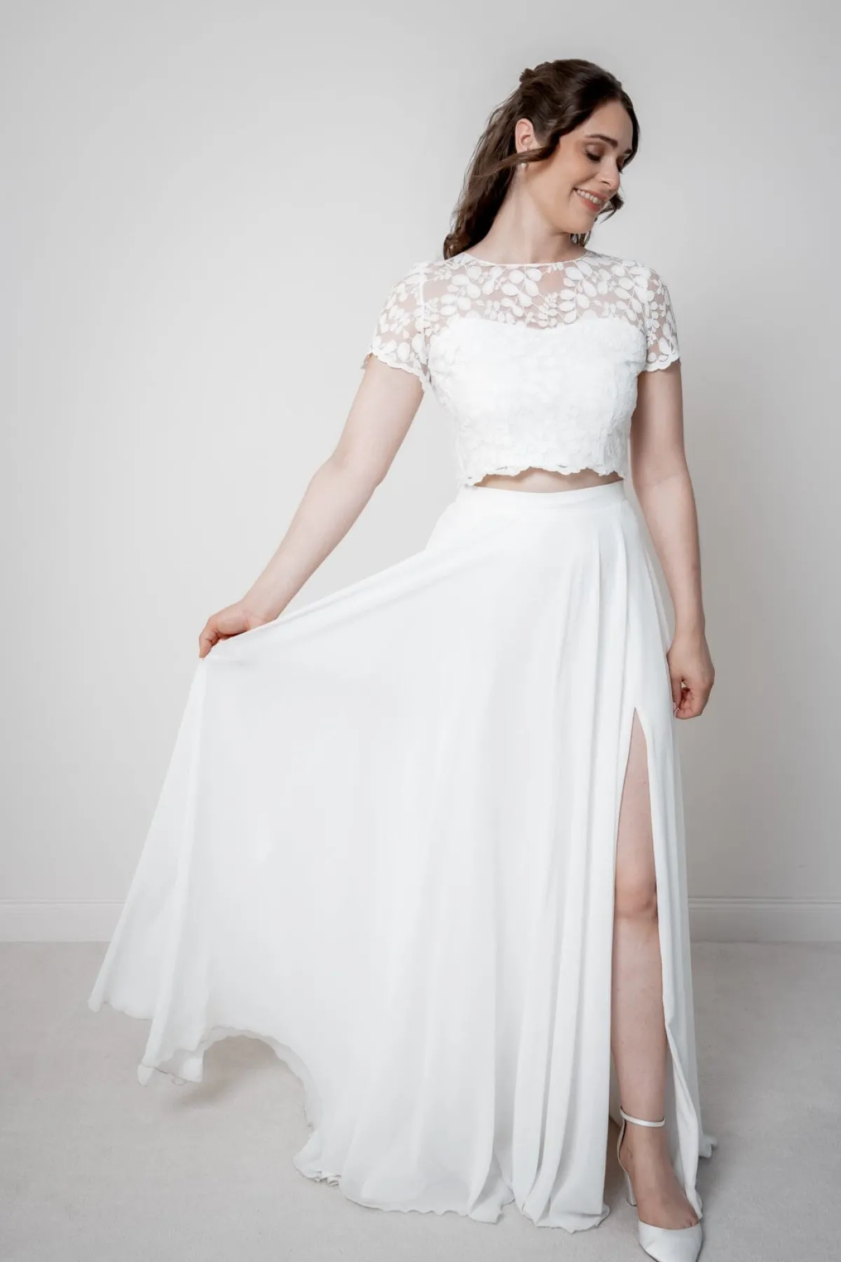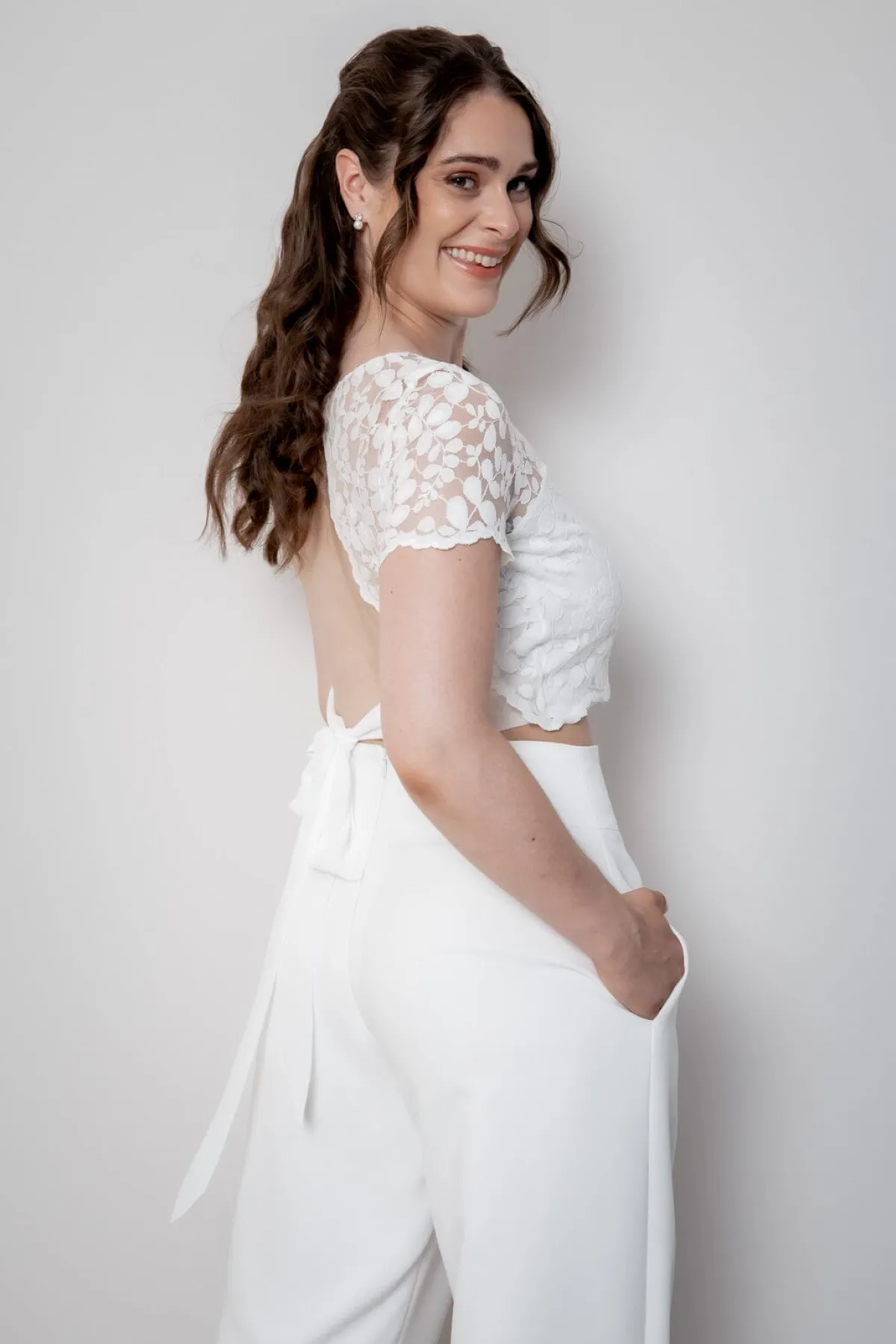 Sorea passt zu jedem schlichtem Unterteil in Ivory, Weiß oder auch in Farbe. Es lässt sich bei jeder Art von Trauzeremonie stilvoll als moderner Zweiteiler tragen – Standesamt, Kirche, Freie Trauung am Strand oder Gartenhochzeit – alles ist möglich!