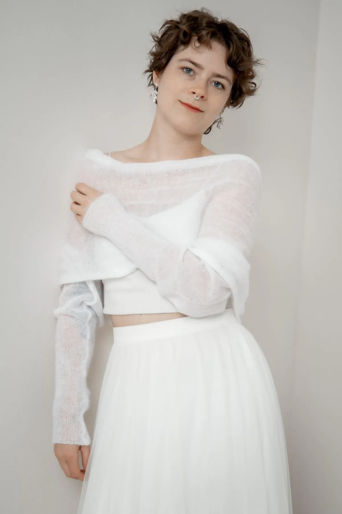 Kurze Strickjacke zum Wickeln mit langen Ärmeln