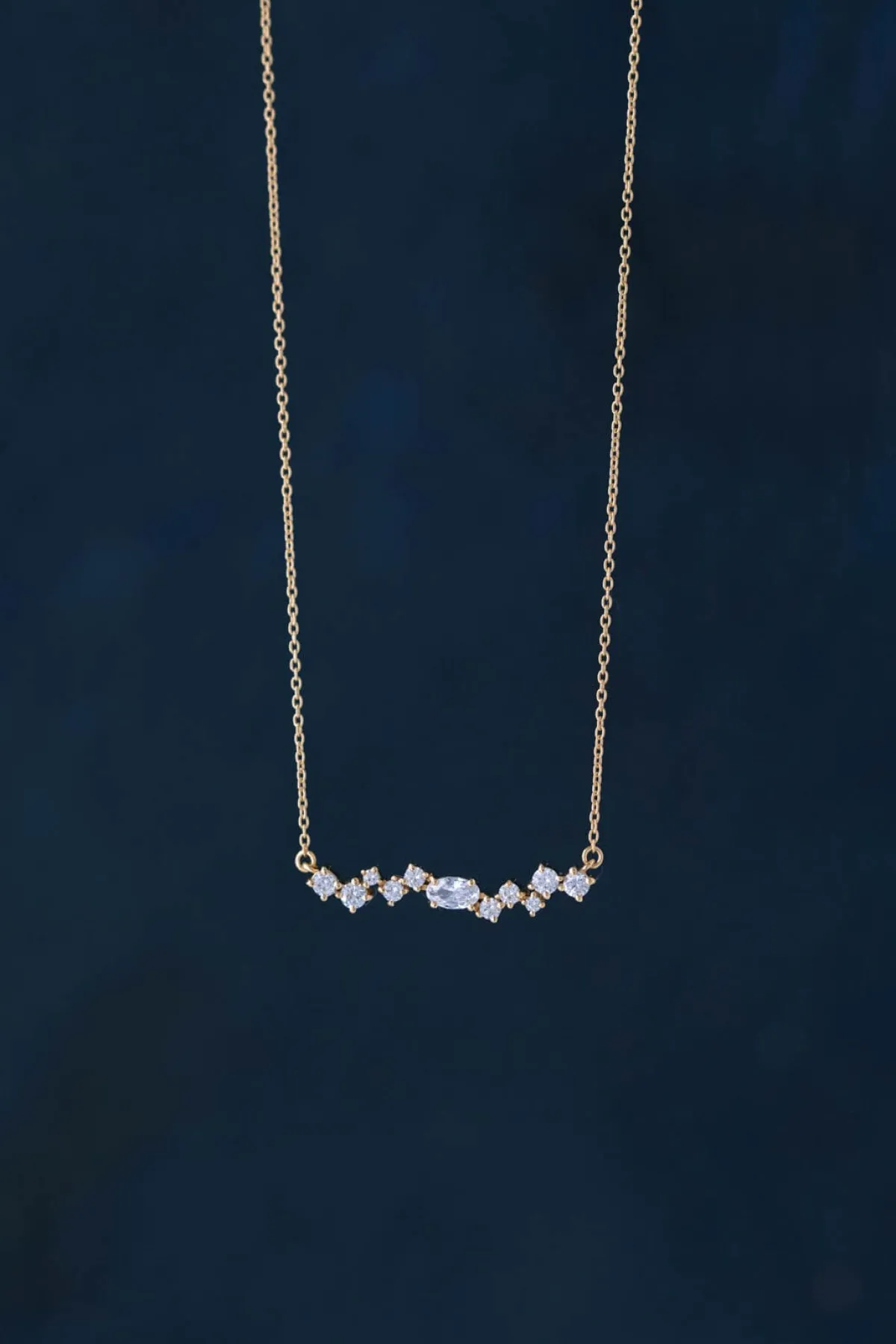 Diese filigrane Halskette ist ein feminines Accessoire für besondere Anlässe, mit dem du in jedem Fall für Aufsehen sorgen wirst: die Anordnung von funkelnden Zirkonia-Steinen, in deren Zentrum ein ovalförmiger Kristall sitzt, schenkt der Kette ihren charakteristischen Glamour-Look.