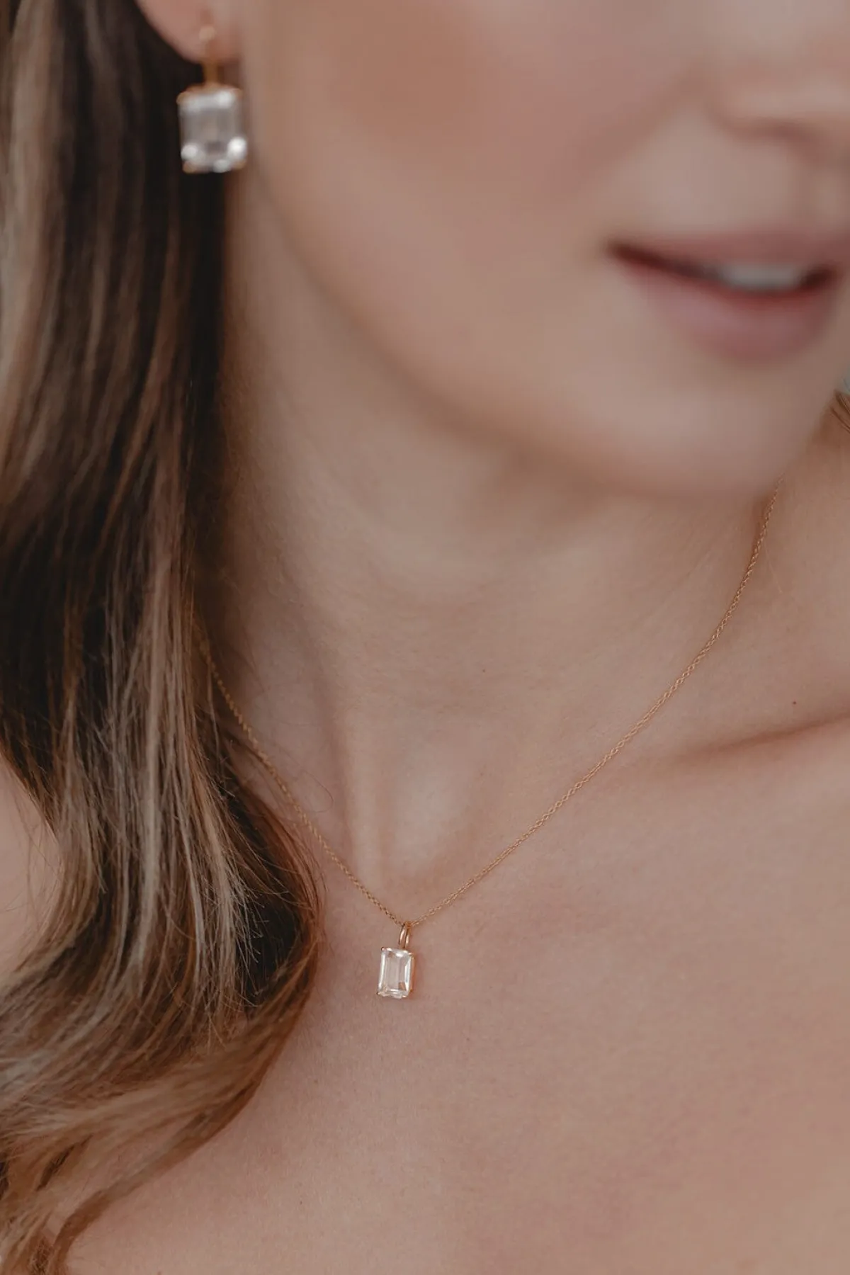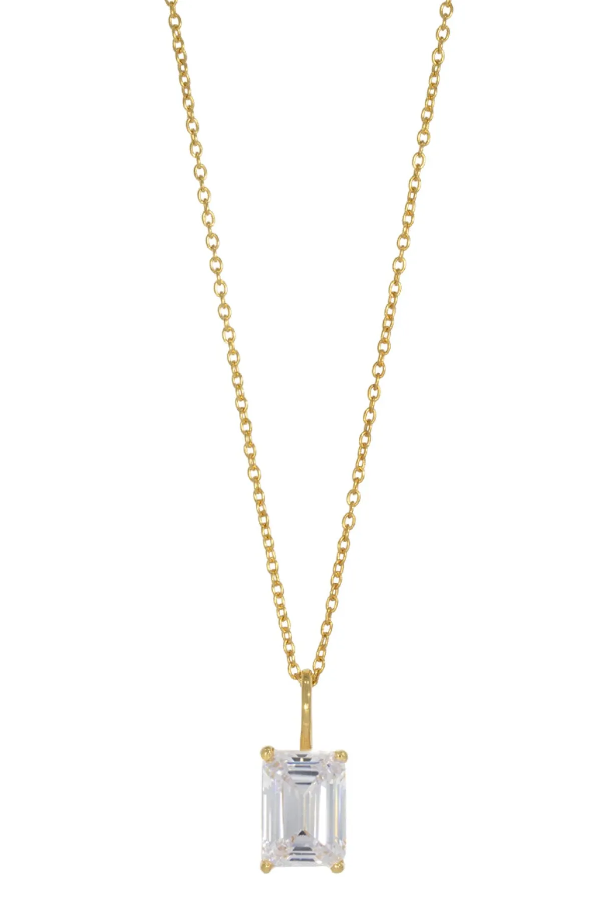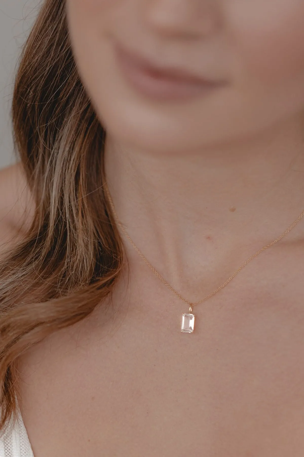 Schlichte zartgliedrige Damenhalskette, die – wahlweise in Gold oder Silber – mit einem luxuriösen Kristallanhänger aufwartet: der hübsche Kristall in außergewöhnlichem Smaragdschliff strahlt mit seiner Trägerin um die Wette!