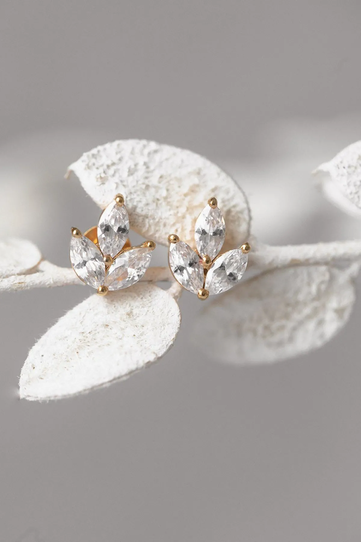 Du suchst nach schlichten aber trotzdem sehr eleganten Ohrringen als Accessoire für dein Brautoutfit? Dann sind diese wunderschönen Kristall Ohrstecker genau das richtige für dich. Die drei Zirkonia Kristalle im edlen Marquise-Schliff in Blätter-Form lassen dich an deinem großen Tag ganz besonders funkeln und verleihen dir einen glamourösen Look.