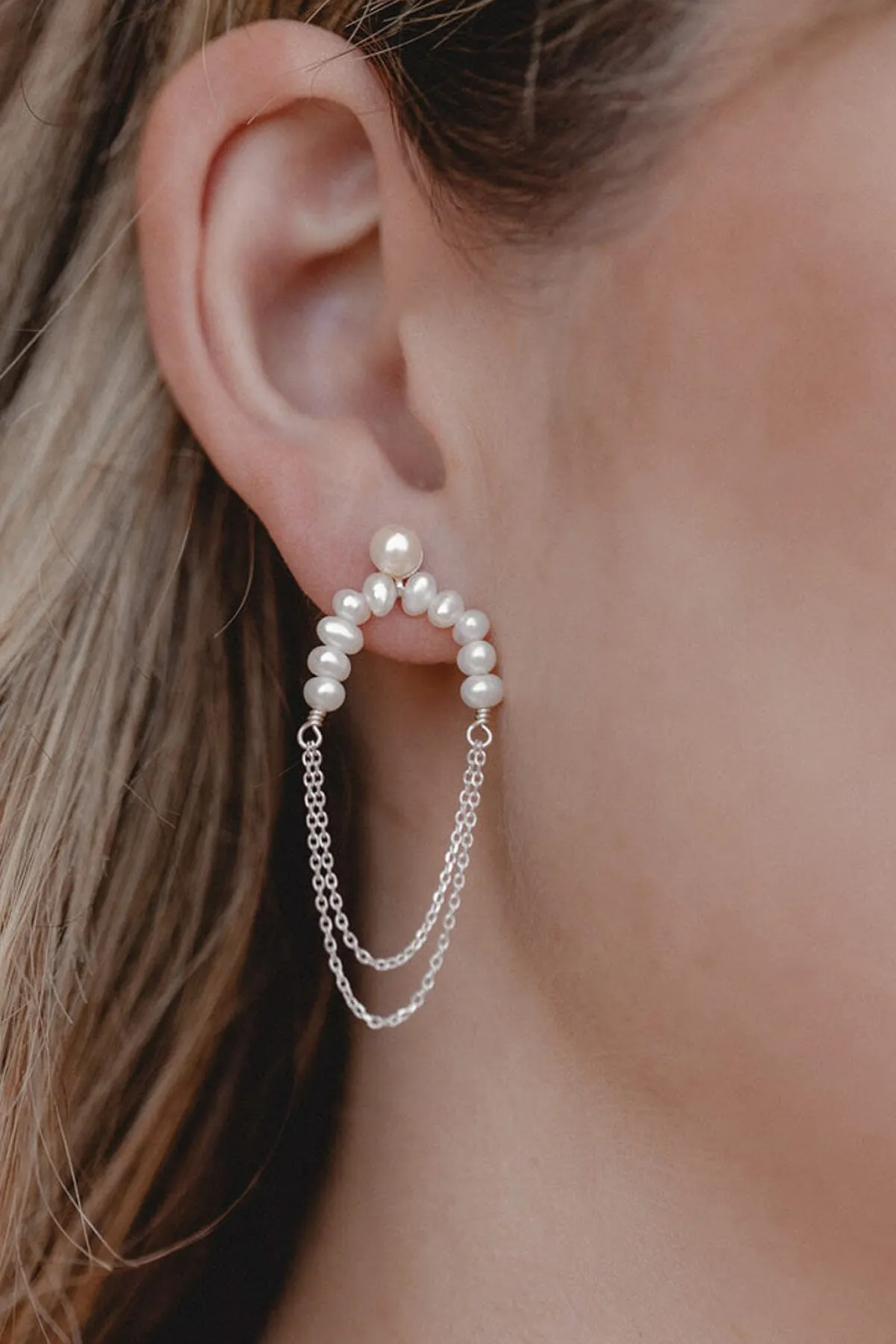 Die Waverider-Ohrstecker der neuen Perlen-Kollektion „Pure Pearls“ von Juvelan sind eine stilvolle Kombination aus zeitlosen und trendigen Elementen: auf einen klassischen Perlenstecker folgen filigran aufgefädelte Süßwasserperlen und schwingende Kettenglieder in Gold oder Silber, die für einen modernen und trendigen Look sorgen.