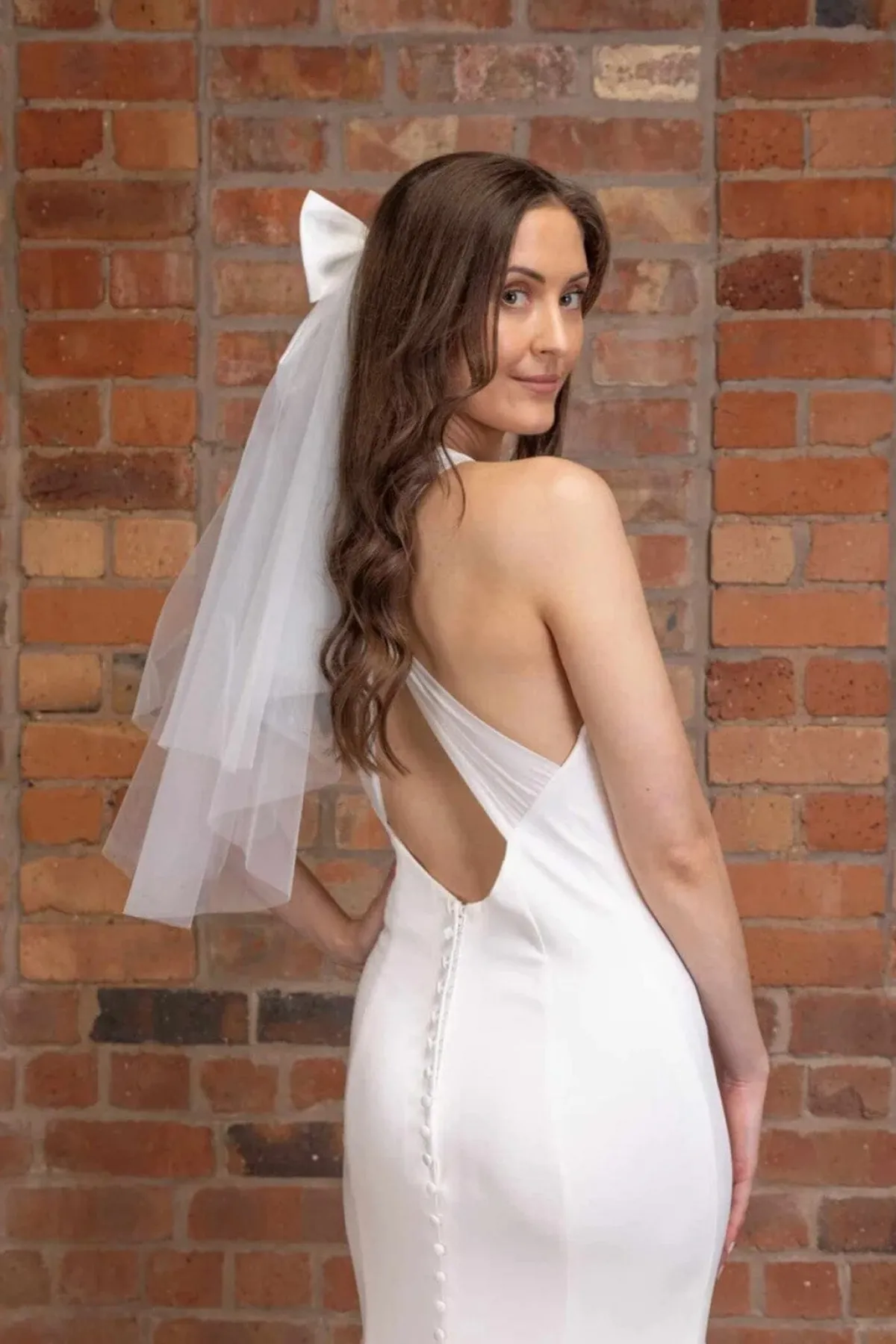 Moderner, charmanter Schleier in Ivory aus Softtüll mit großer Satinschleife als Eyecatcher. Ideal als verspielte und aparte Kopfbedeckung für jede Art der Trauzeremonie. Mit 60 cm passt dieses hübsches Accessoire zu Brautkleidern in jeder Länge.