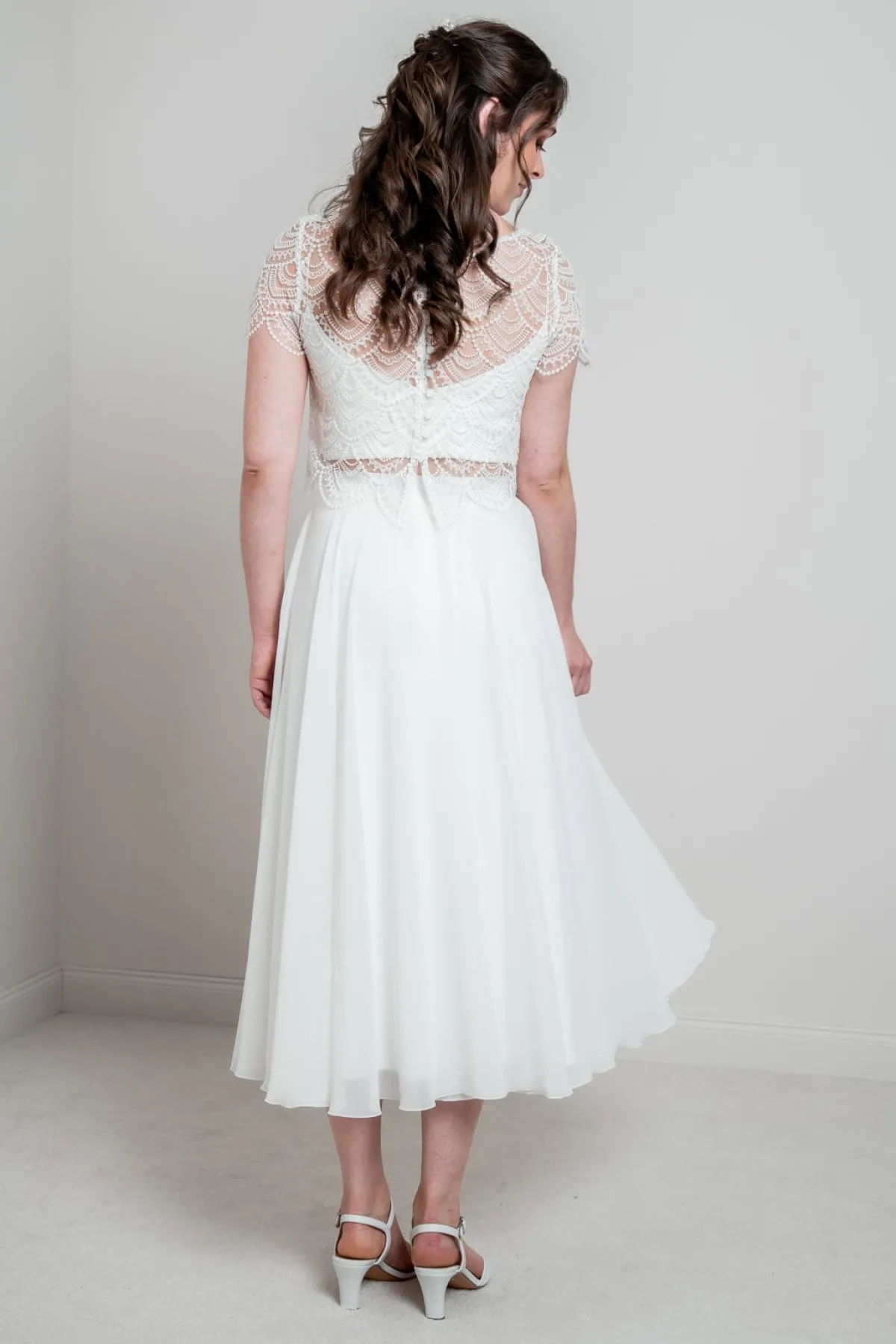 Stelle dir deinen individuellen Brautkleid Zweiteiler zusammen: mit einem Top, Pullover oder Body lassen sich einzigartige Looks kreieren, die sich bestens für Standesamt, Kirche oder Freie Trauung eignen.