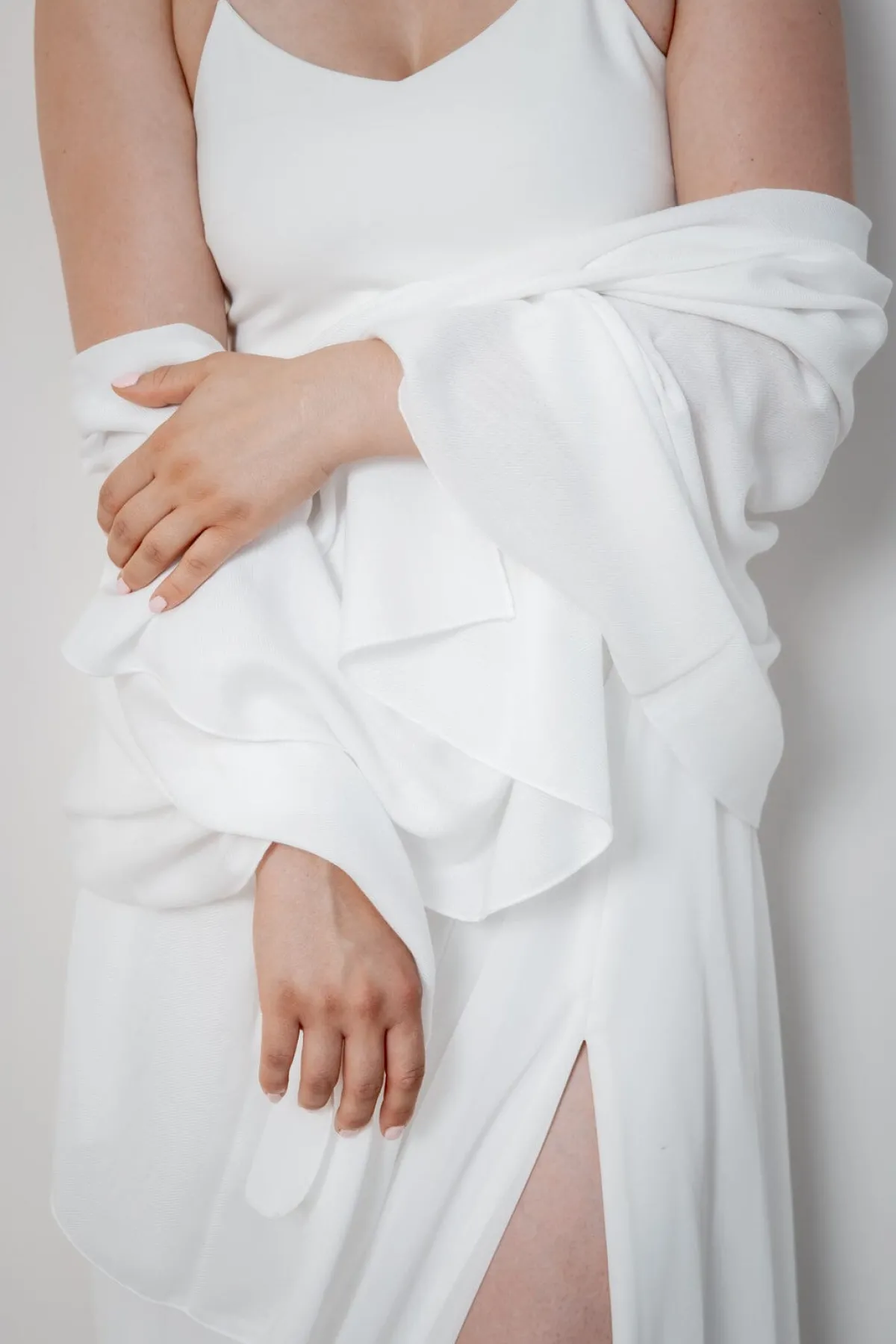 Unkomplizierte Stola aus weichem Viskose-Mix. Feminines und zeitloses Accessoire für jede Jahreszeit, das zu einer Vielzahl von Brautkleid-Stilen passt.
