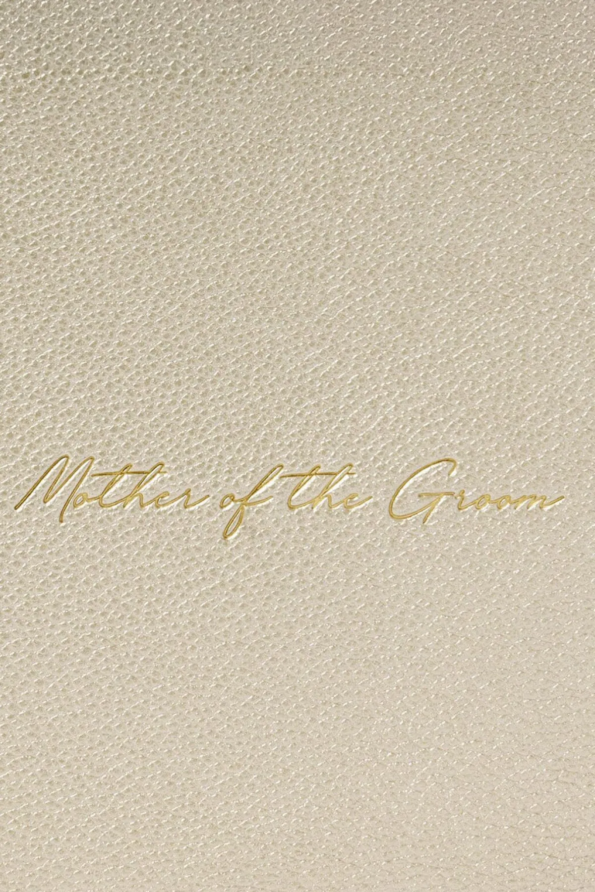 Diese kleine goldfarbene Clutch mit Metallic-Effekt ist unkompliziert, modisch und eignet sich bestens dafür, der Mutter des Bräutigams die frohe Botschaft vorab zu verkünden. Mit farblich passender „Mother of the Groom“-Prägung im Handlettering-Style ist die Pouch ein persönliches und originelles Accessoire.