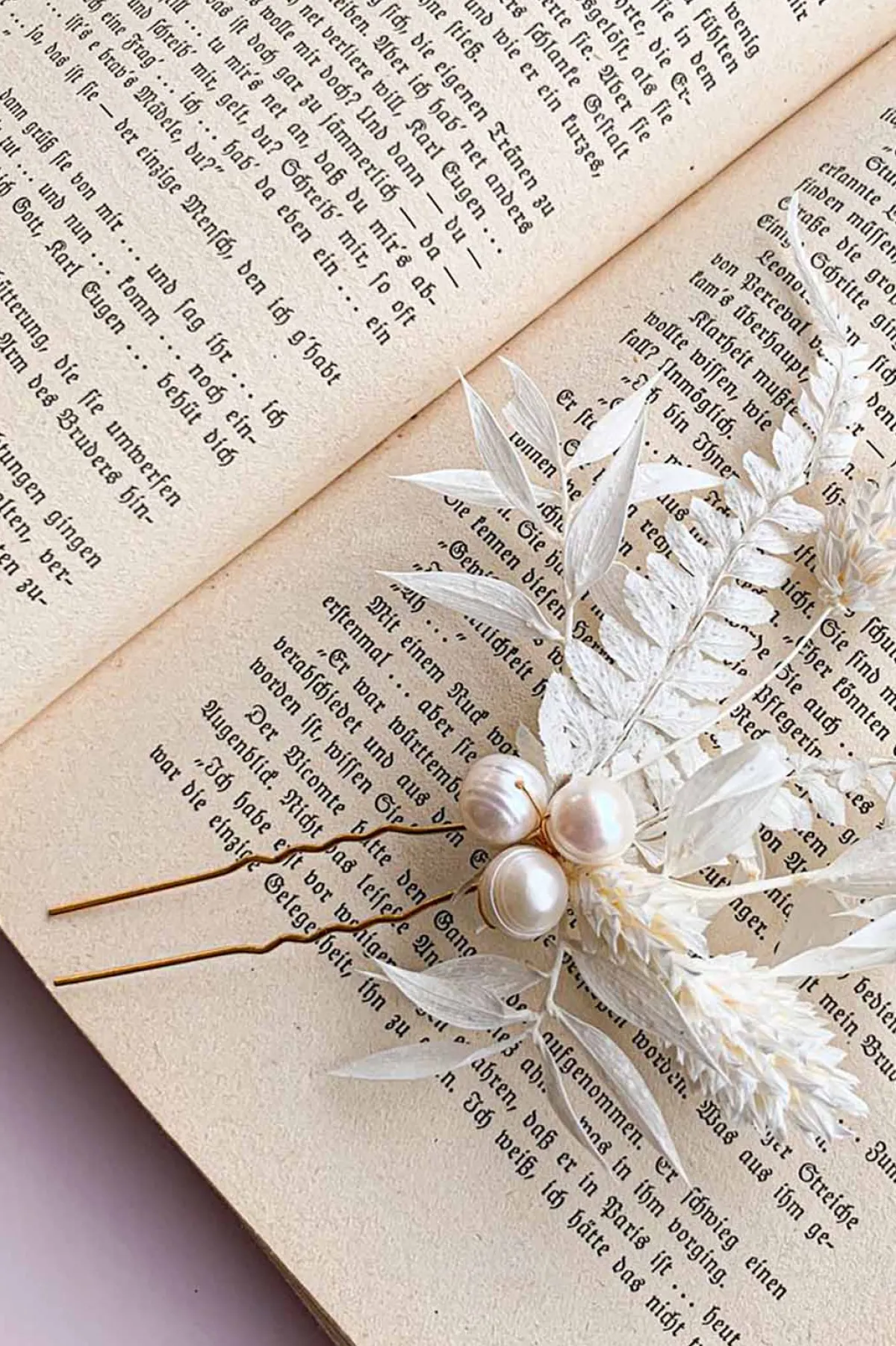 Haarpin im Botanical Style mit Trockenblumen und Perlen
