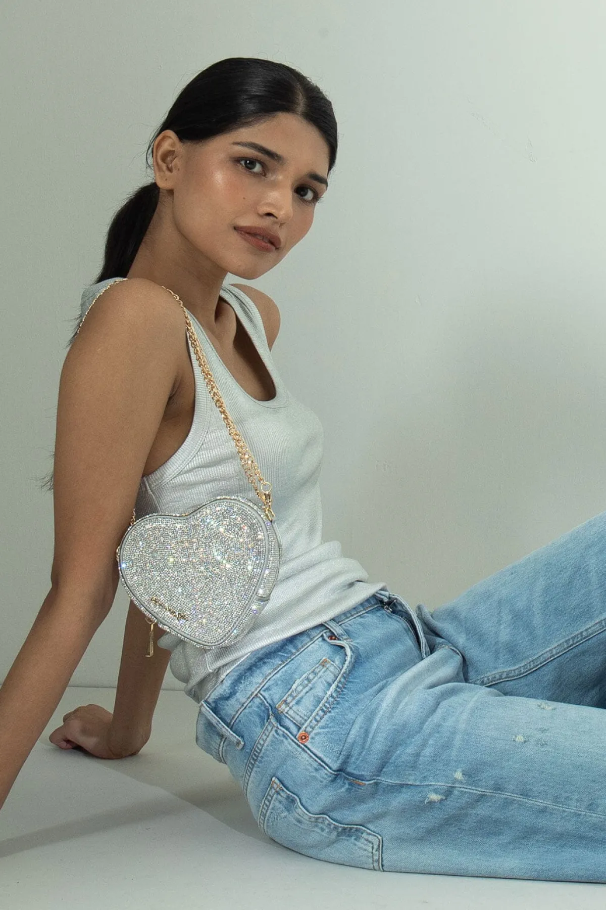 Die silberfarbene Handtasche in Herzform der Trendmarke Weat besteht aus kristallbesetztem Satin und veganem Material in Lederoptik. 14k vergoldete Verschlüsse unterstreichen das glamouröse Design. Deine Utensilien sind dank Metallreißverschluss und ein Innenfach sicher aufgehoben. Ein abnehmbarer Griff sowie eine verstellbare Kette machen die kleine Clutch zu einem besonders flexiblen Braut Accessoire.