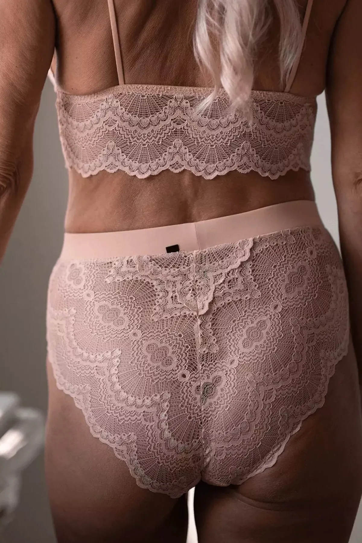 Die High-Waist Form des femininen Slips aus zarter Spitze und Elasthan umschmeichelt dank des hohen Bundes deinen Hüftbereich. In der Taille schließt er mit einem weichen, elastischen Gummibund ab, ohne deinen Bauch einzuschnüren.