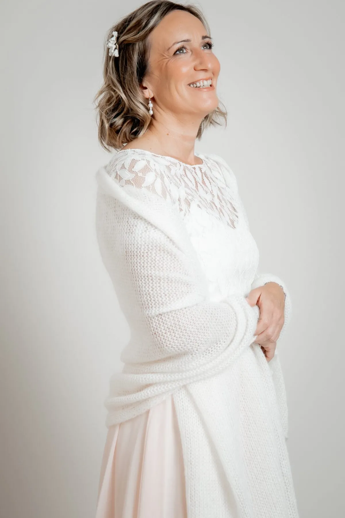 Vielseitig zu tragen und auch nach der Hochzeit noch ein kuscheliger Begleiter für Herbst und Winter.