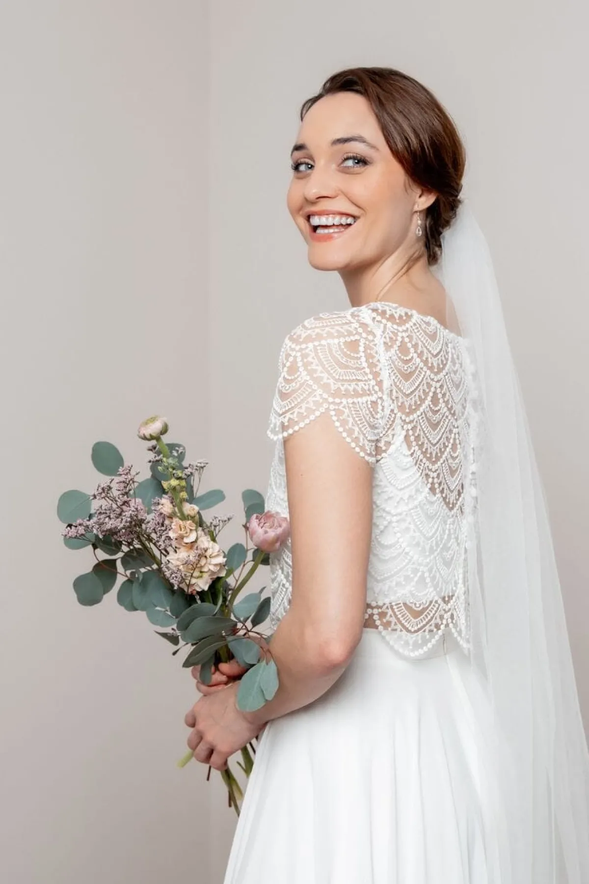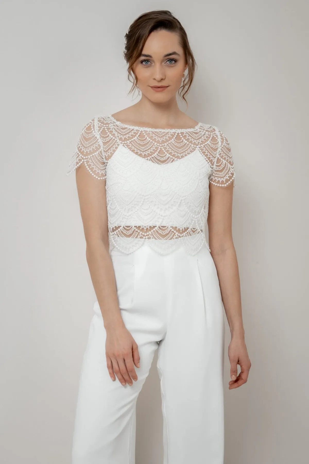 Braut Top im Jäckchen-Stil mit Rücken-Knopfleiste