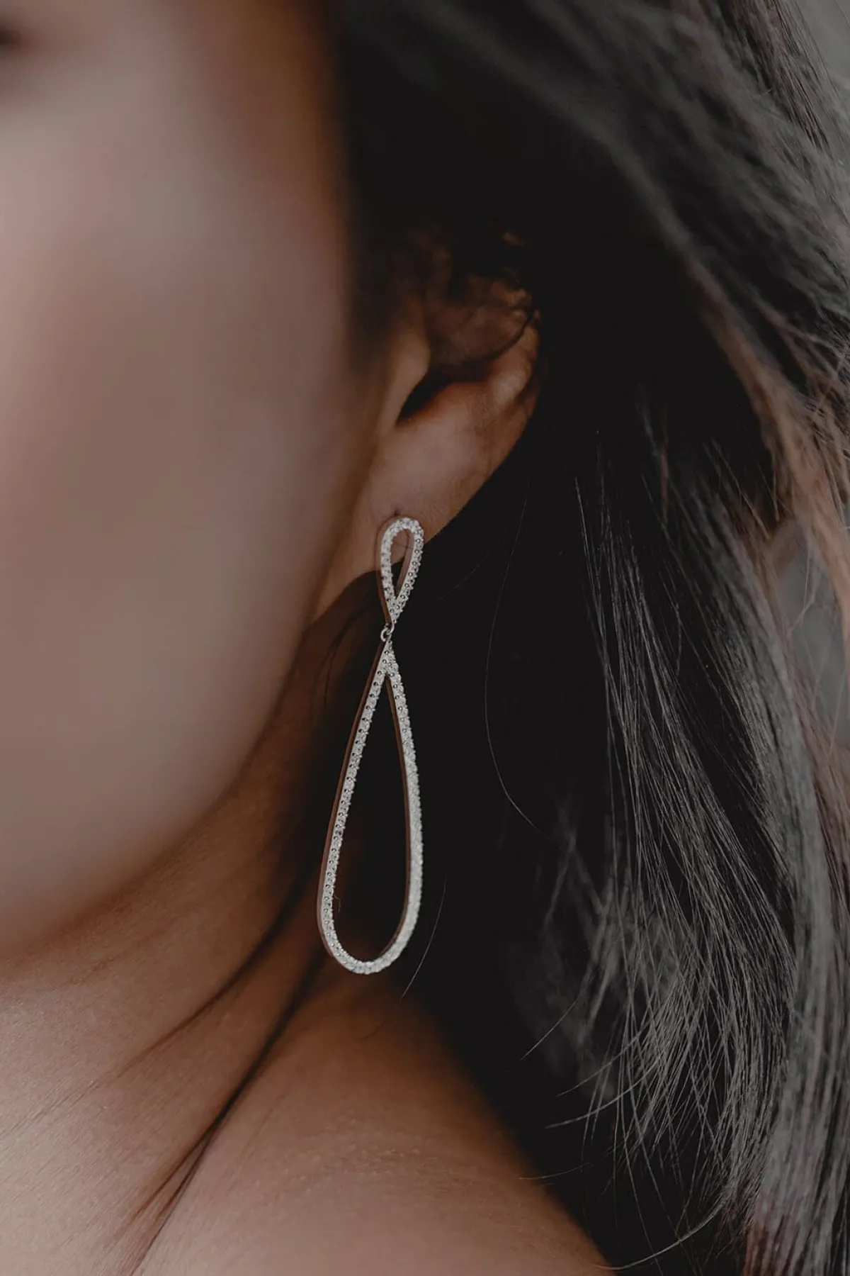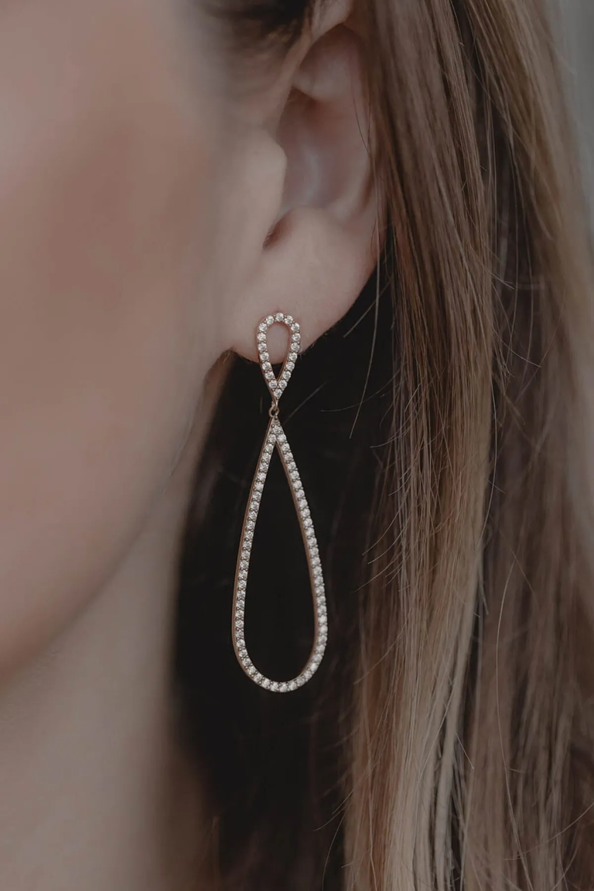 „Felicity“ bedeutet „Glückseligkeit“ – ein Name, der perfekt zu diesen atemberaubenden Ohrringen und zur Hochzeit passt. Lange kristallbesetzte Tropfen, die miteinander verbunden ein elegantes und auffälliges Statement Schmuckstück bilden, werden mit Sicherheit für Aufsehen sorgen.