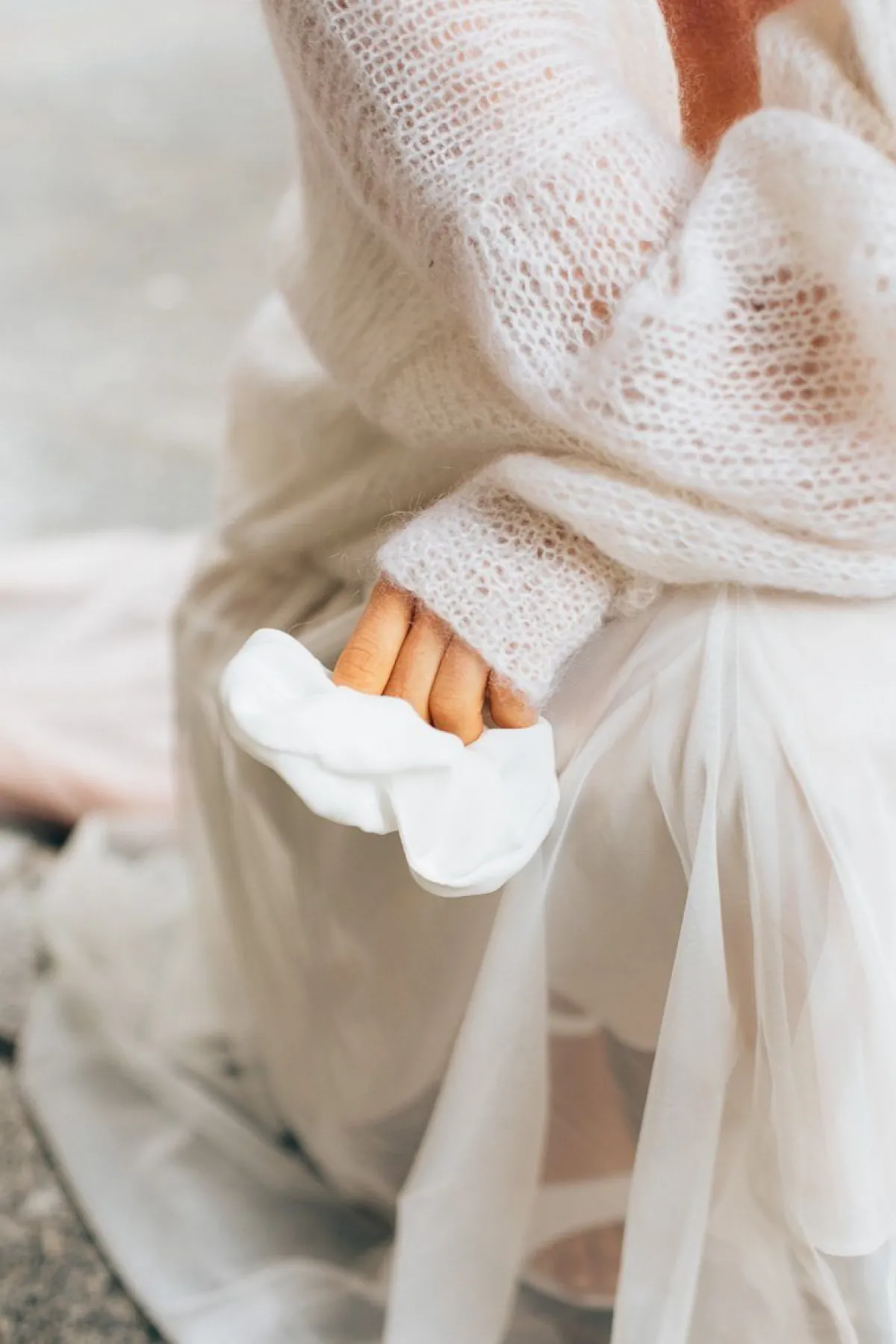Sein gerafftes Finish sorgt für einen Eyecatcher – und das Beste: Unsere noni-Scrunchies werden nachhaltig aus den Verschnitten unserer Brautkleid-Stoffe handgefertigt, sodass wir keine Stoffreste unnötig entsorgen müssen und Müll vermeiden – der Umwelt zuliebe!