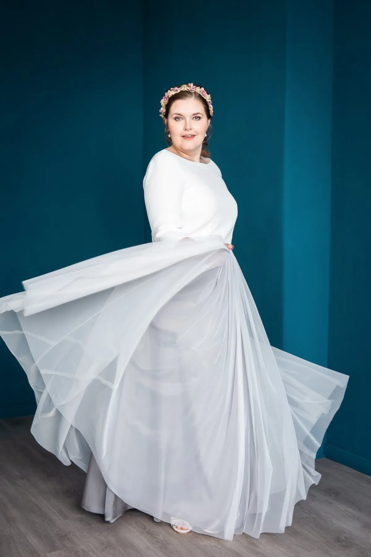 In elegantem Grau ist der Maris-Tüllrock ein origineller Farbakzent für eine moderne Hochzeit, schließlich muss es nicht immer Weiß oder Ivory sein.