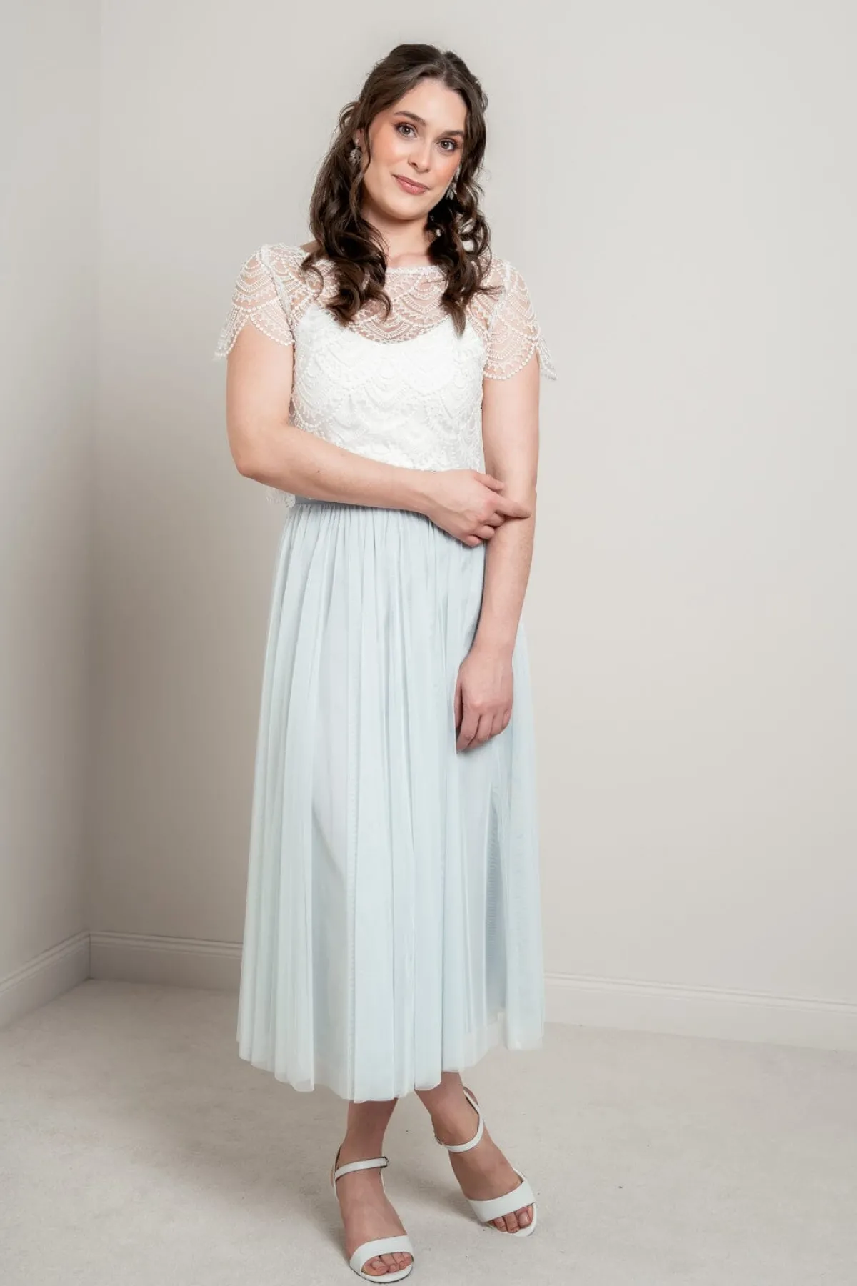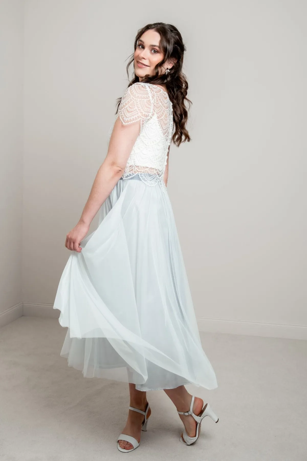 Midi-Braut Rock aus fließendem, hellblauen Tüll
