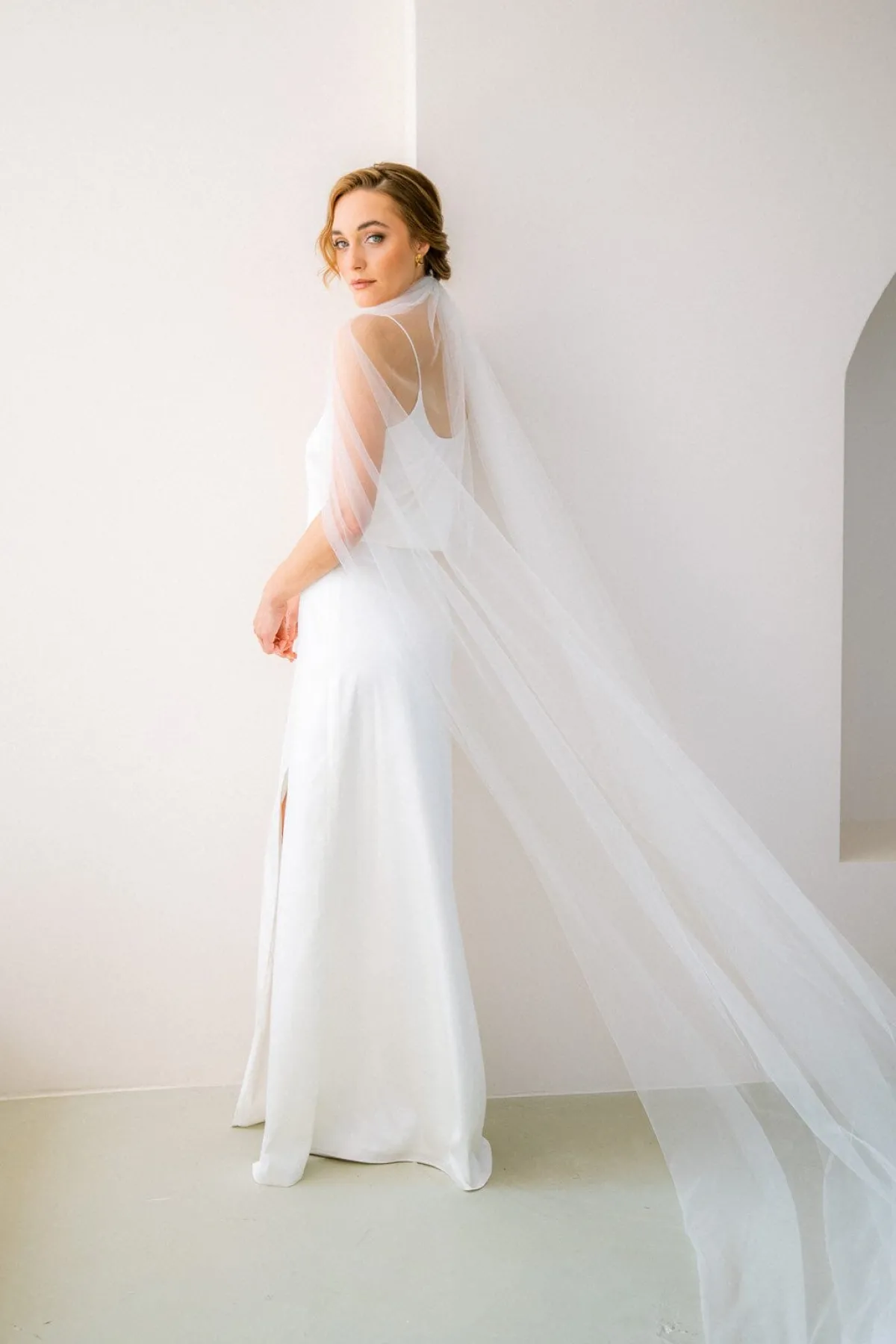 Langer Braut Rock aus elfenbeinfarbenem Satin für elegante Zweiteiler-Kombis. Gerade und figurnah geschnitten und mit einem verführerischen Schlitz am linken Bein versehen, lässt sich der Nahla Rock mit jedem Oberteil zu einem individuellen Hochzeitsoutfit stylen.