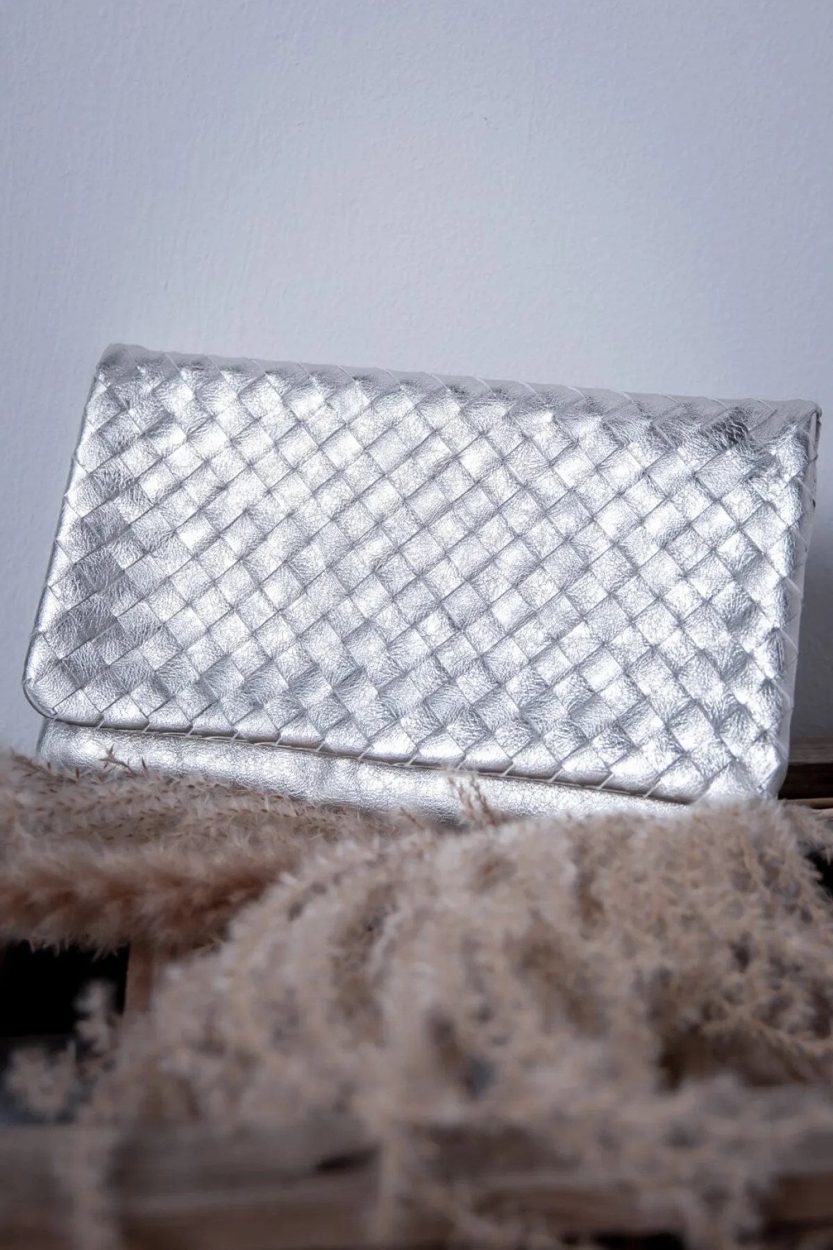 Die Handtasche aus hochwertigem italienische Rindsleder ist auf der Vorderseite mit stylishem Flechtdesign in funkelndem Weißgold versehen und garantiert dir einen großen Auftritt – zu jedem Anlass!