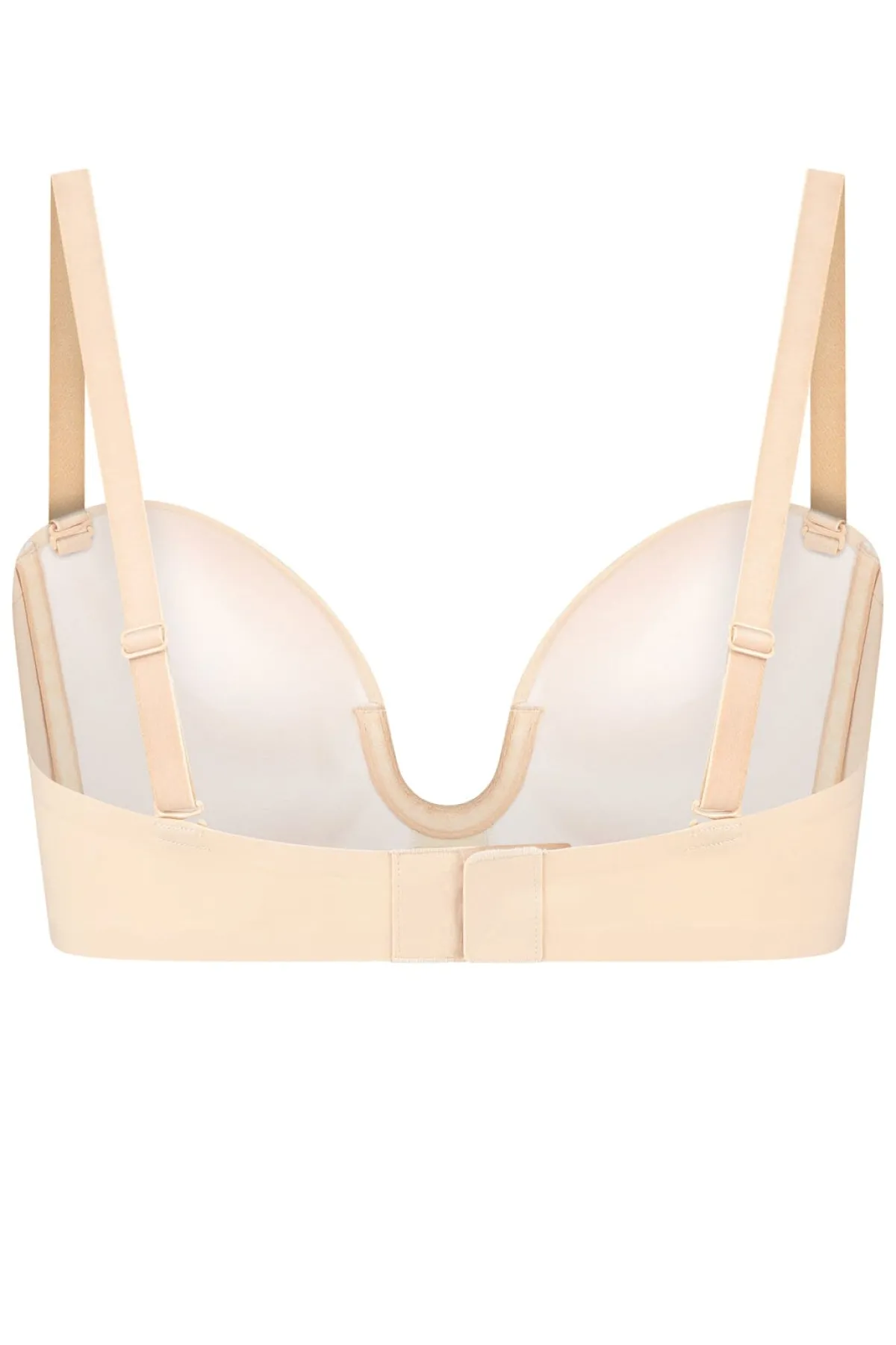 Weicher, beigefarbener BH mit abnehmbaren Trägern für vielseitige Looks mit oder ohne freie Schulter. Gut geeignet für Outfits mit tiefem Ausschnitt vorne wie hinten.