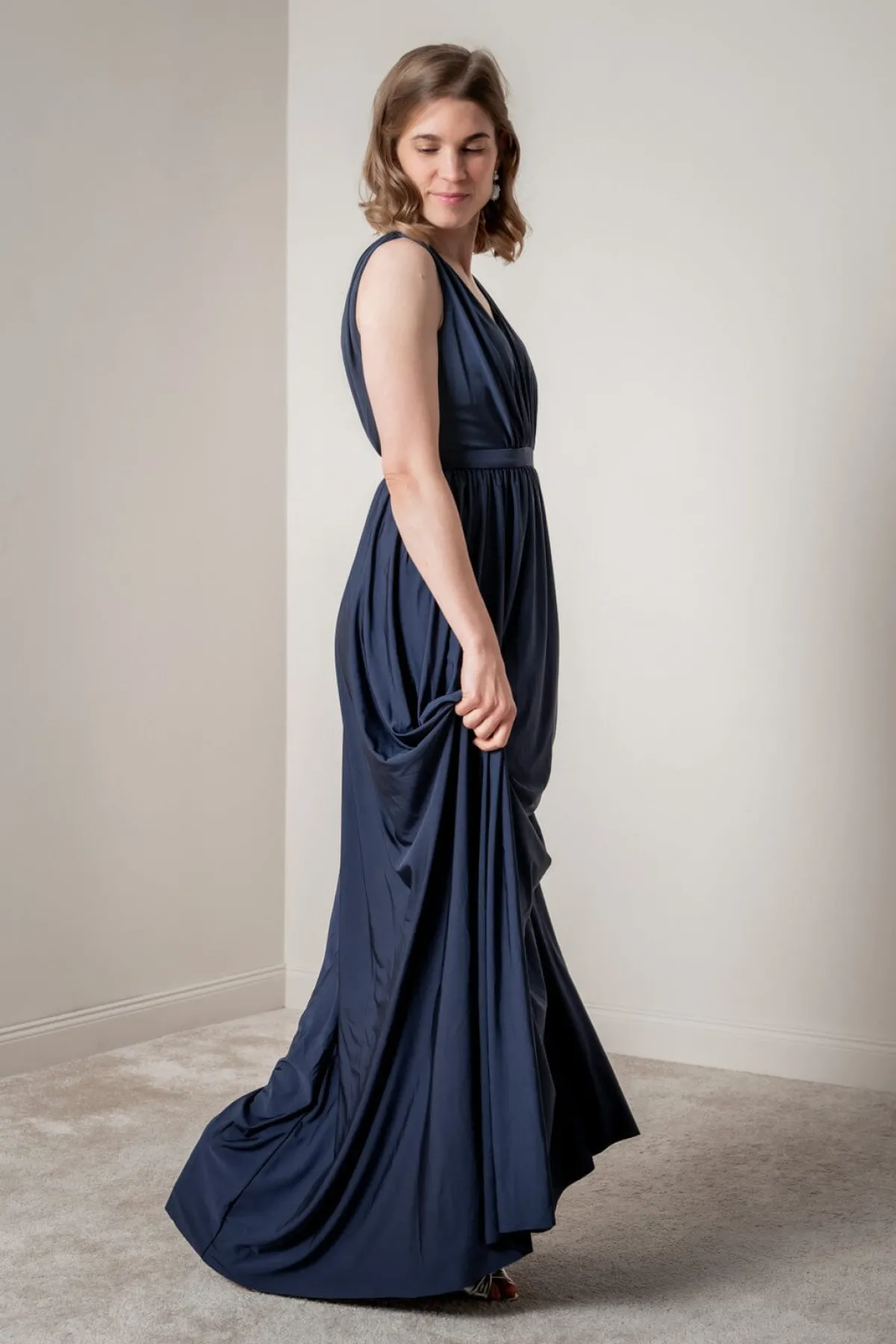 Bali in Midnight ist ein feminines, ärmelloses Kleid für Hochzeit, Empfang, Gala oder Cocktail Party. Ideal für Hochzeitsgäste, Trauzeuginnen und Brautjungfern, aber auch Brautmütter.