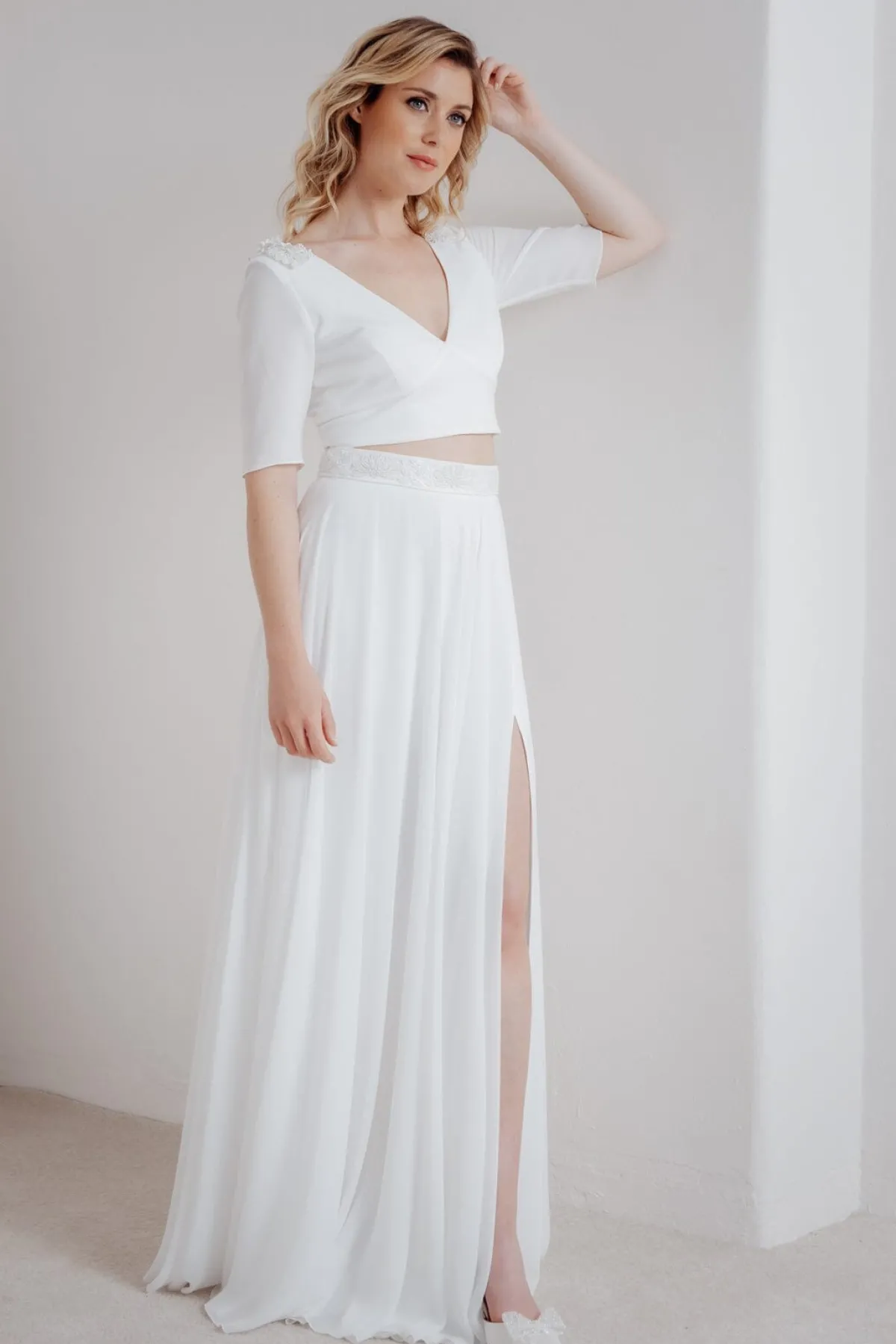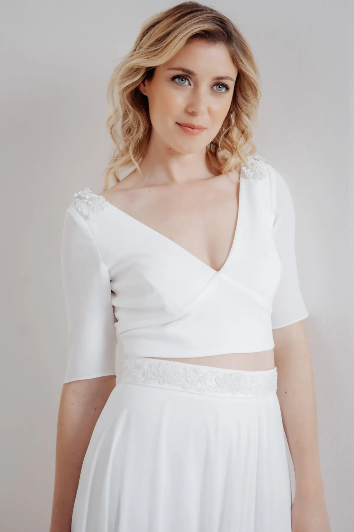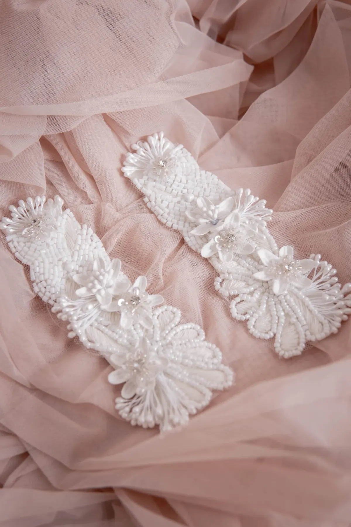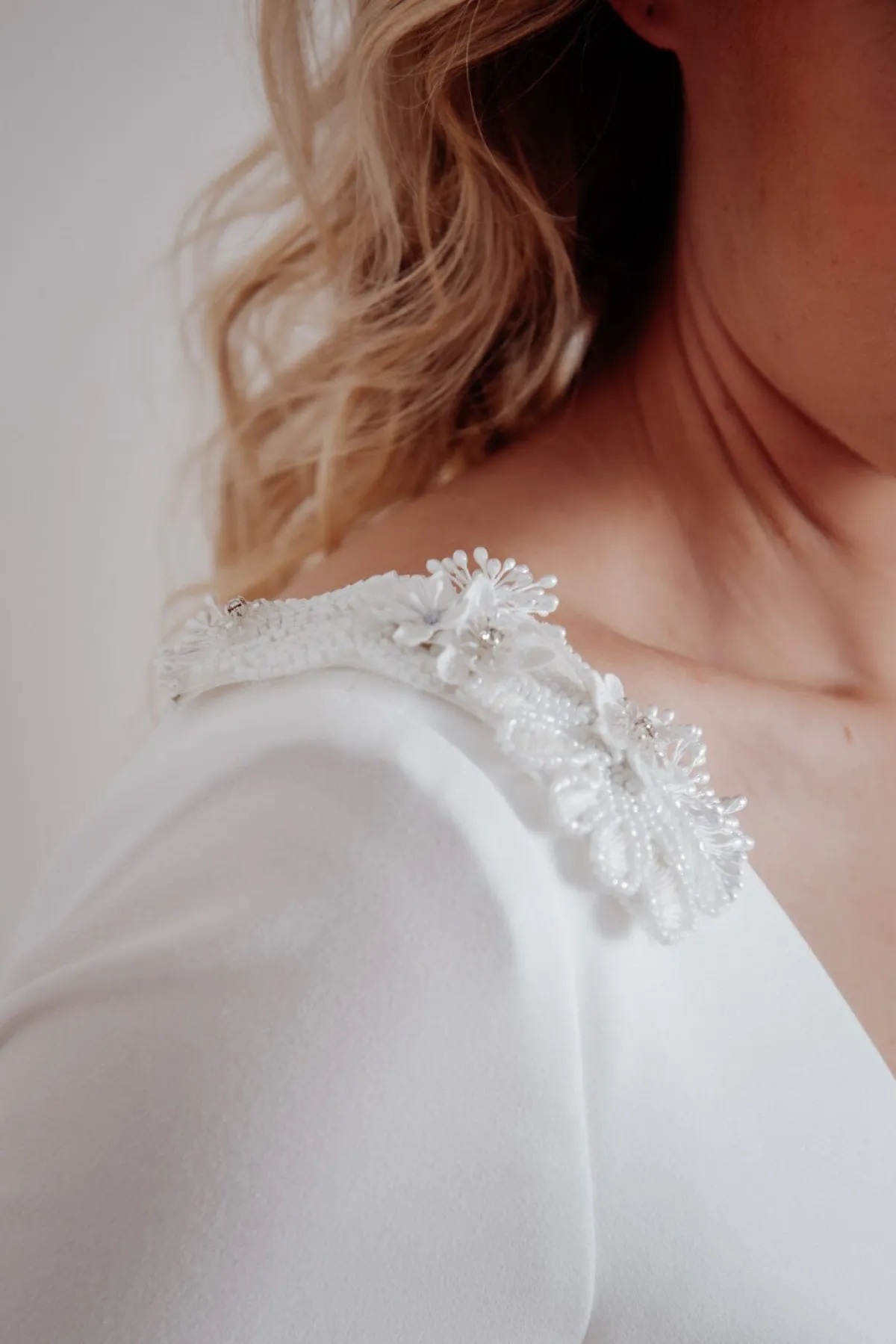 Betone deine Schulterpartie und gib deinem Look ein glamouröses Upgrade. Diese funkelnden Epauletten werden als charmante Applikationen links und rechts auf der Schulter deines Brautkleides oder Tops fixiert. Stilisierte weiße Blüten aus Pailletten, Schmucksteinen und kleinen Perlen ergeben ein luxuriöses und ganz besonderes Accessoire.