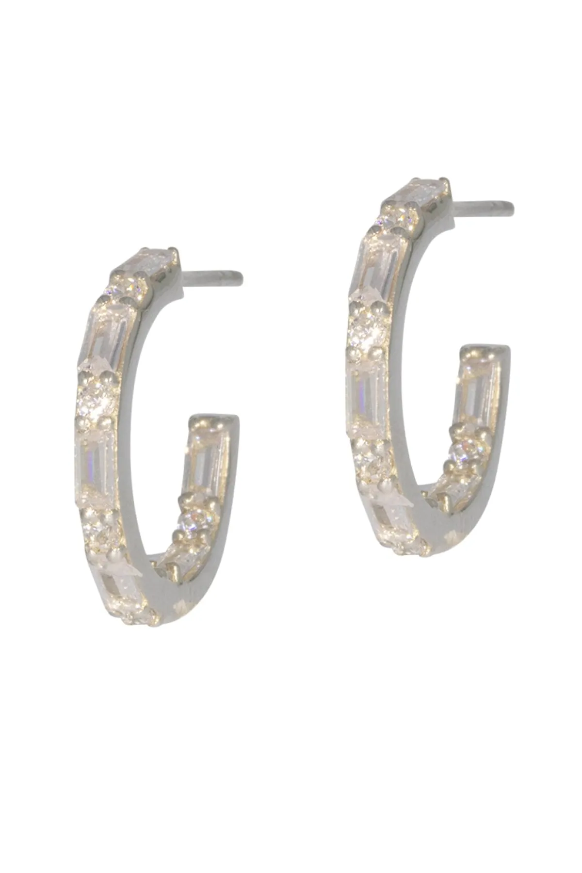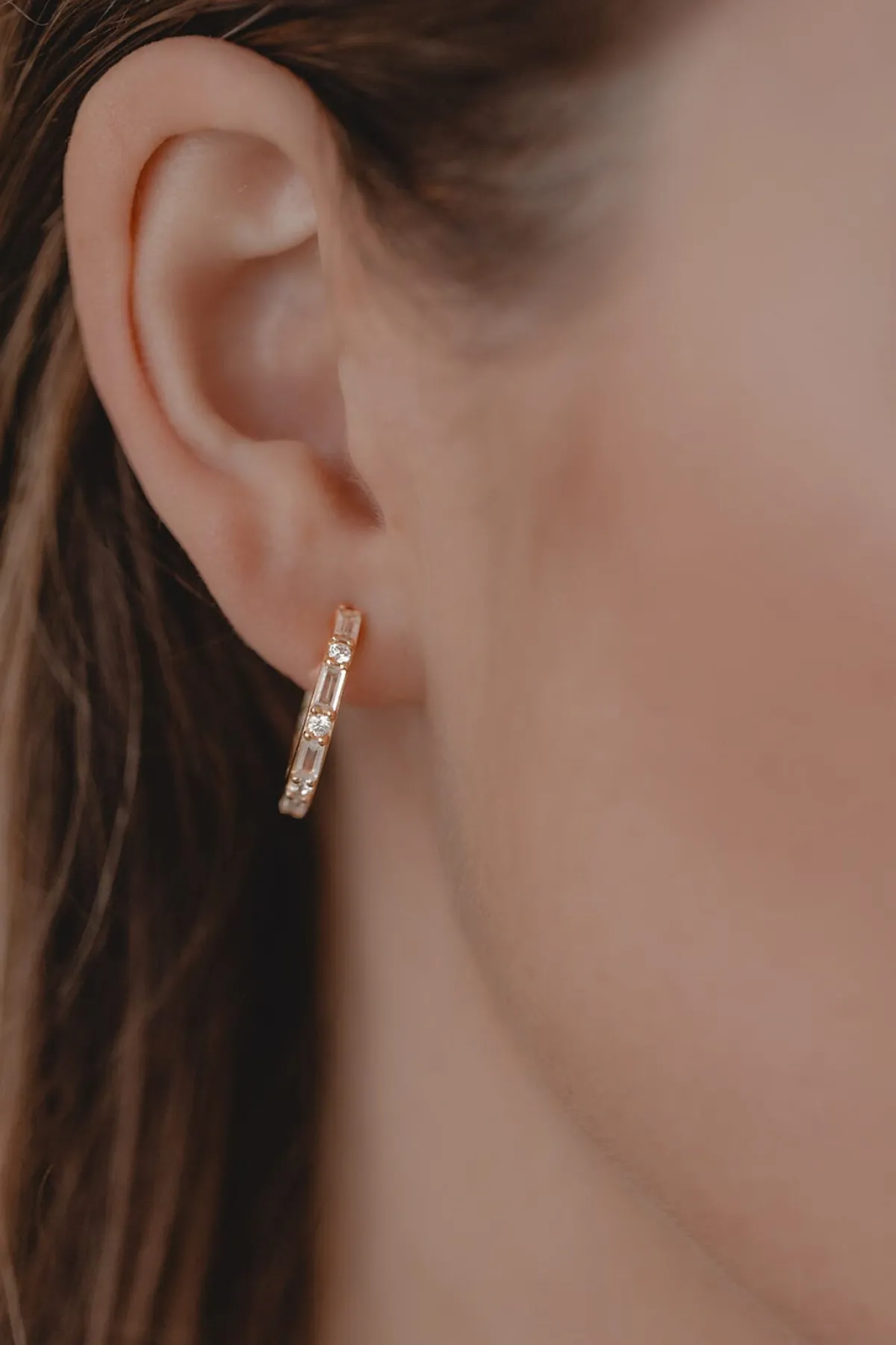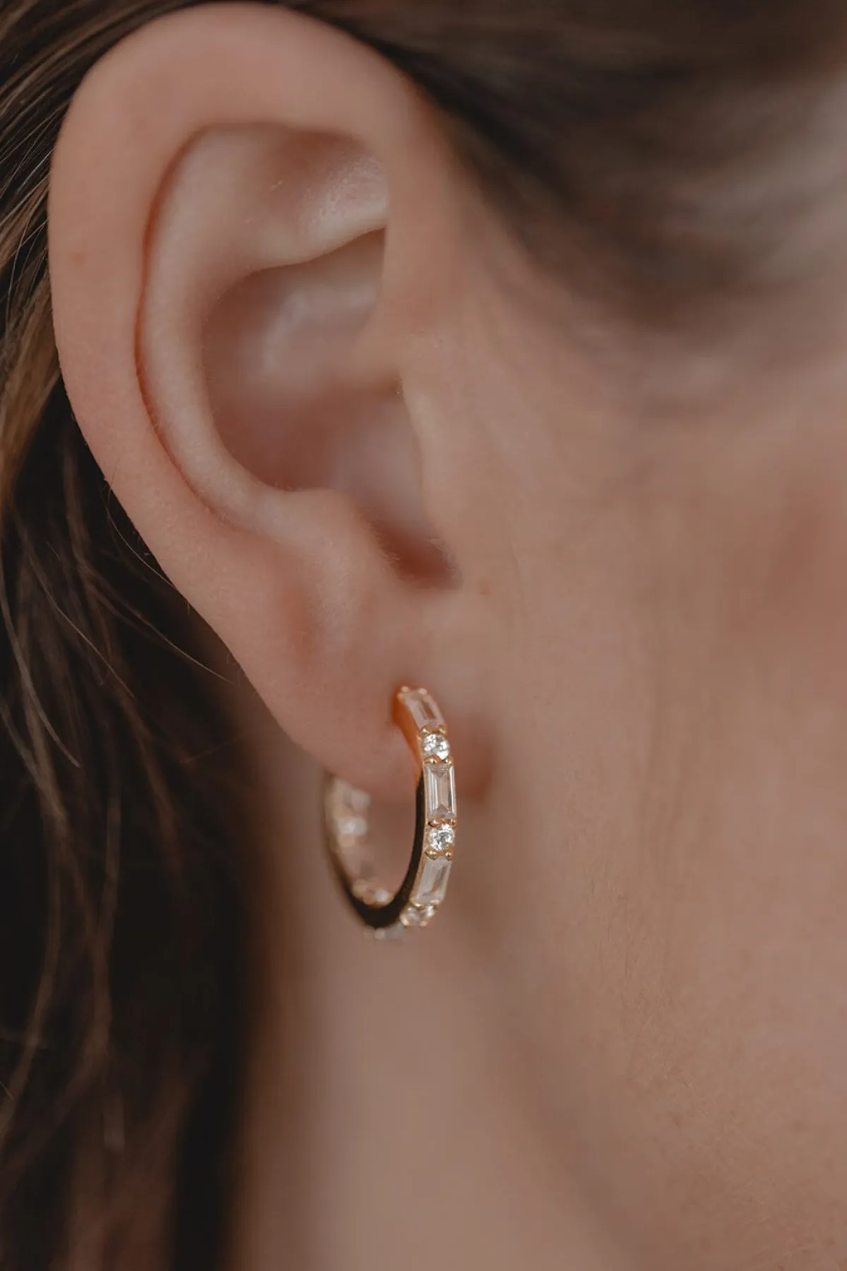 Kreolen in klassischer Form, versehen mit abwechselnd runden und eckigen Kristallen im Baguette-Schliff für einen eleganten und erhabenen Look.