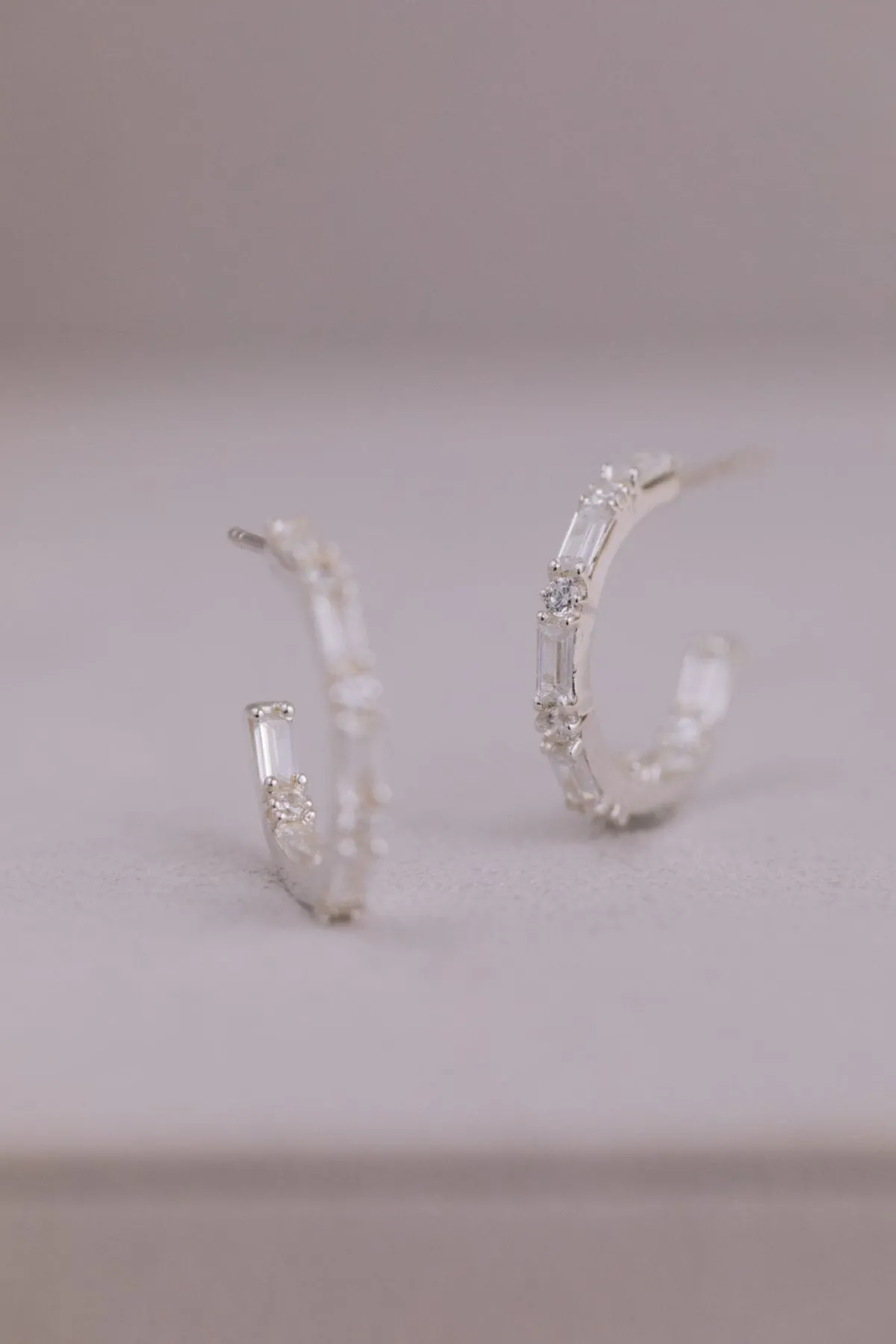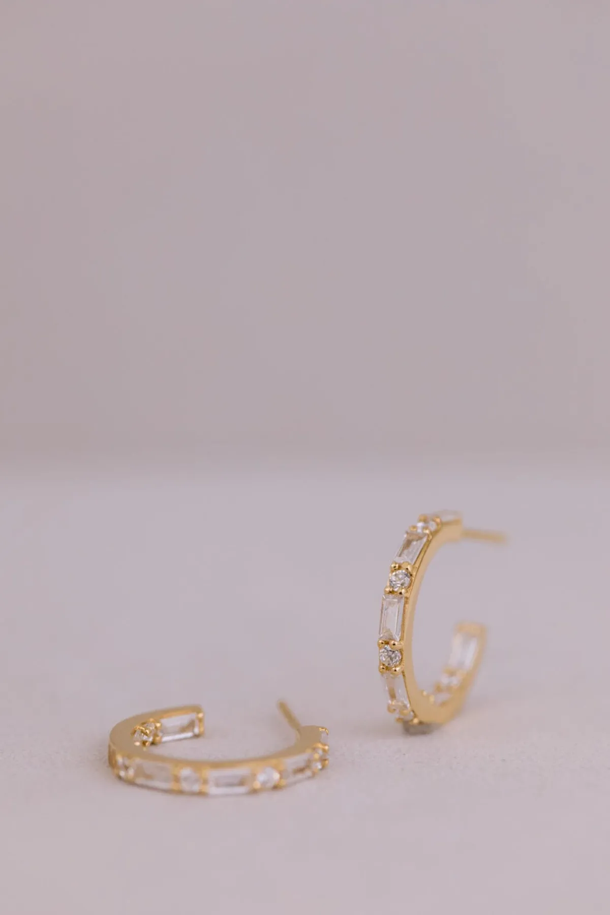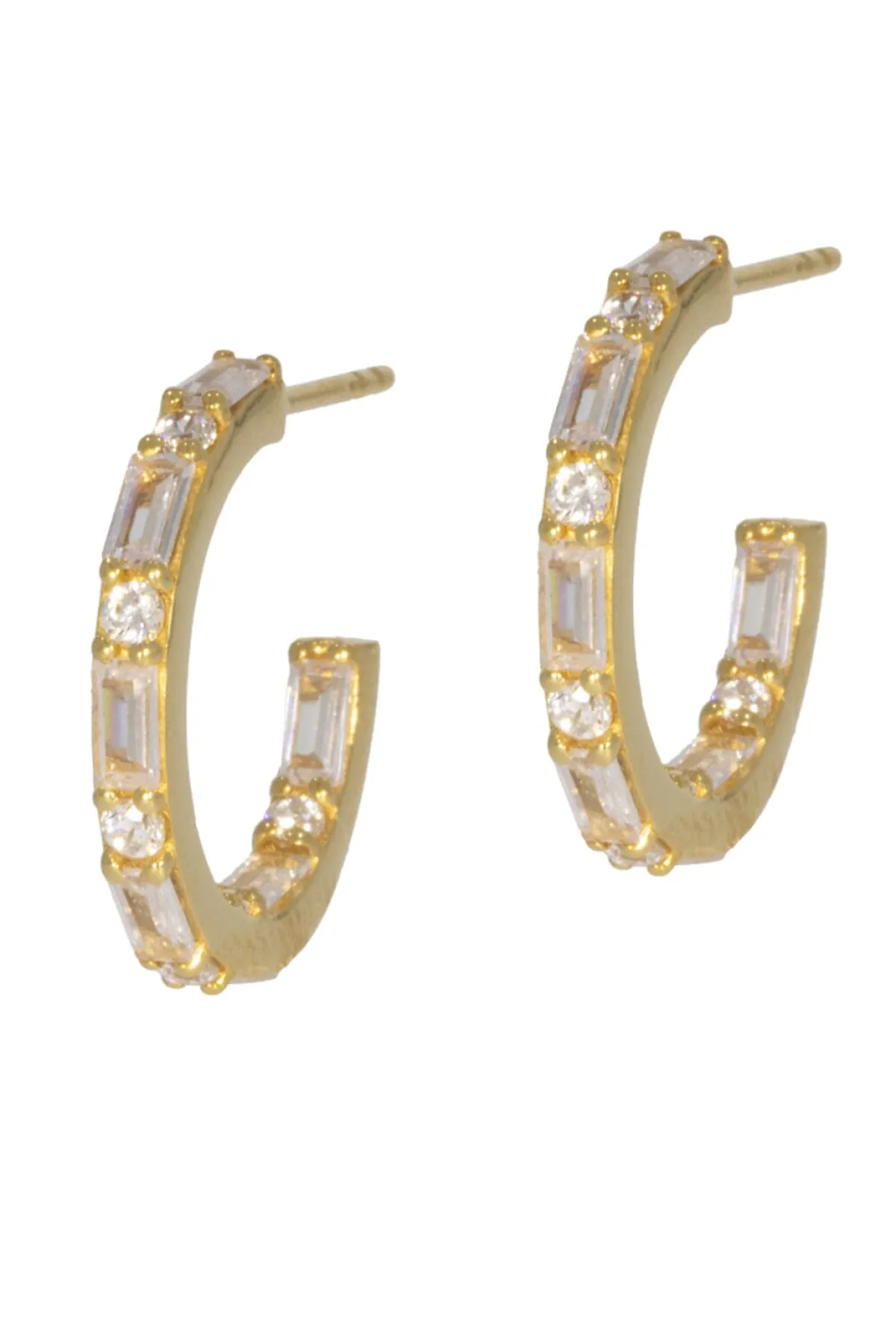 Kreolen in klassischer Form, versehen mit abwechselnd runden und eckigen Kristallen im Baguette-Schliff für einen eleganten und erhabenen Look.