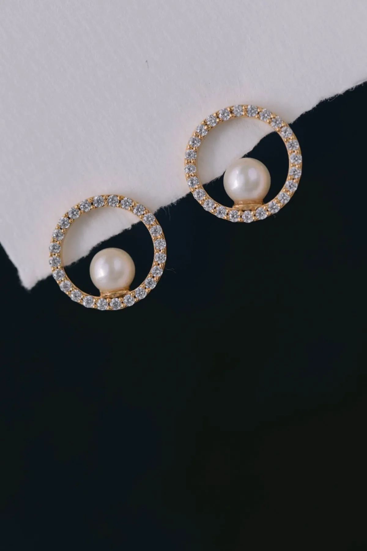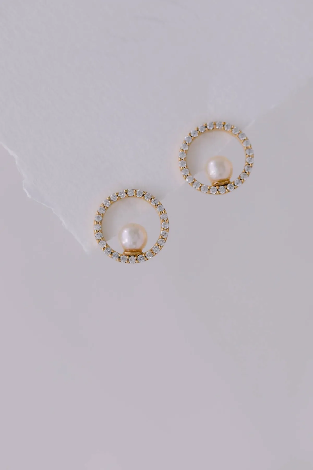 Glamouröse Ohrstecker für den ganz großen Auftritt: die Danielle Braut Ohrringe bestechen durch ihre kristallbesetzte Kreisform, deren Mitte eine glänzende Süßwasserperle ziert. Ein schönes Statement Piece – nicht nur zur Hochzeit.