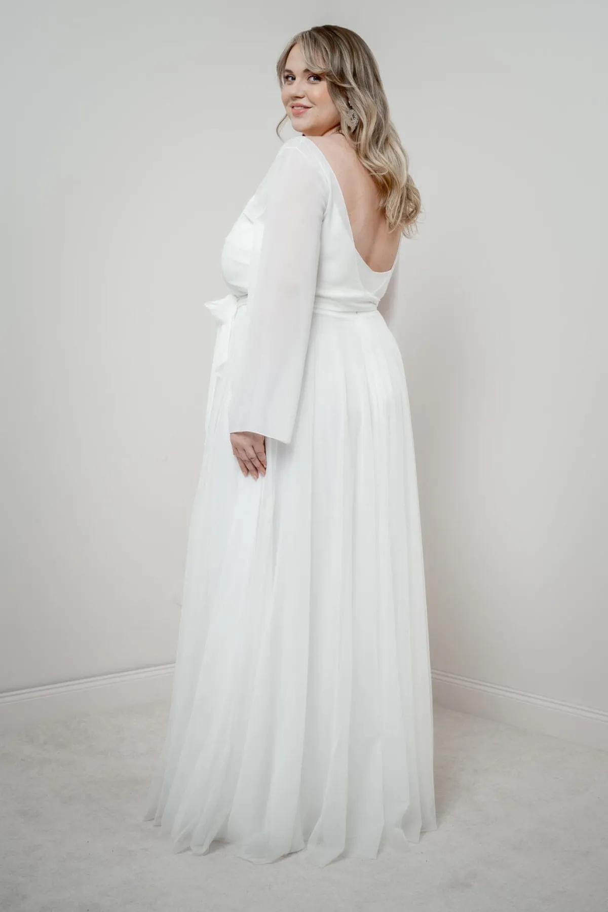 Puristisch gehalten, kommt der Levke Braut-Rock ohne Applikationen aus und ergänzt stimmig minimalistische wie verspielte Zweiteiler-Kombinationen.