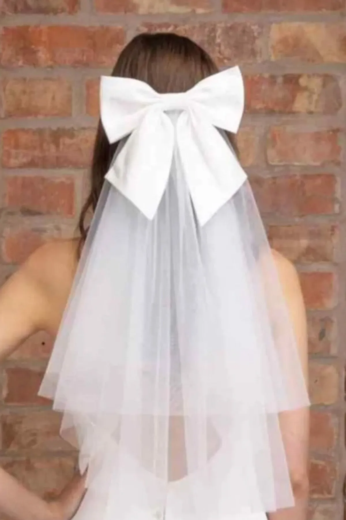 Moderner, charmanter Schleier in Ivory aus Softtüll mit großer Satinschleife als Eyecatcher. Ideal als verspielte und aparte Kopfbedeckung für jede Art der Trauzeremonie. Mit 60 cm passt dieses hübsches Accessoire zu Brautkleidern in jeder Länge.