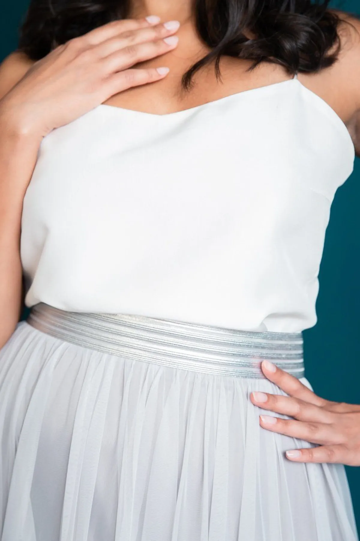 Möchtest du deinem Brautkleid noch mit einem kleinen Eyecatcher den letzten Schliff geben? Der neue Mailenn-Gürtel ist nicht nur ein stylishes Accessoire, sondern auch noch super bequem. Sein funkelndes Silber ist ein toller Kontrast zu Brautkleidern in Ivory, Blush, Pastelltönen oder schickem Grau.