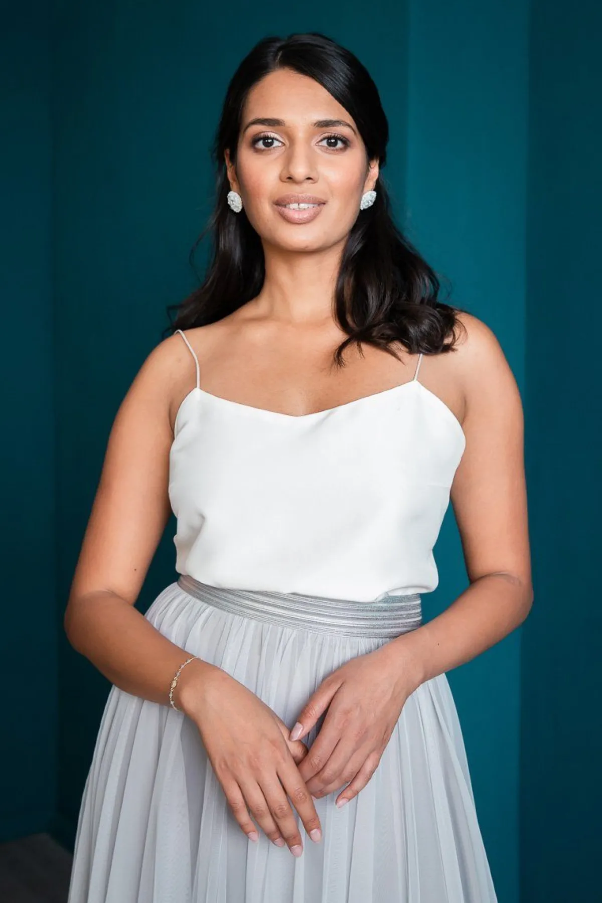Vor allem bei modernen, zweiteiligen Brautkleidern im Mix and Match-Stil ist ein Gürtel ein schönes Bindeglied zwischen Oberteil und -rock und betont wunderbar die Taille.