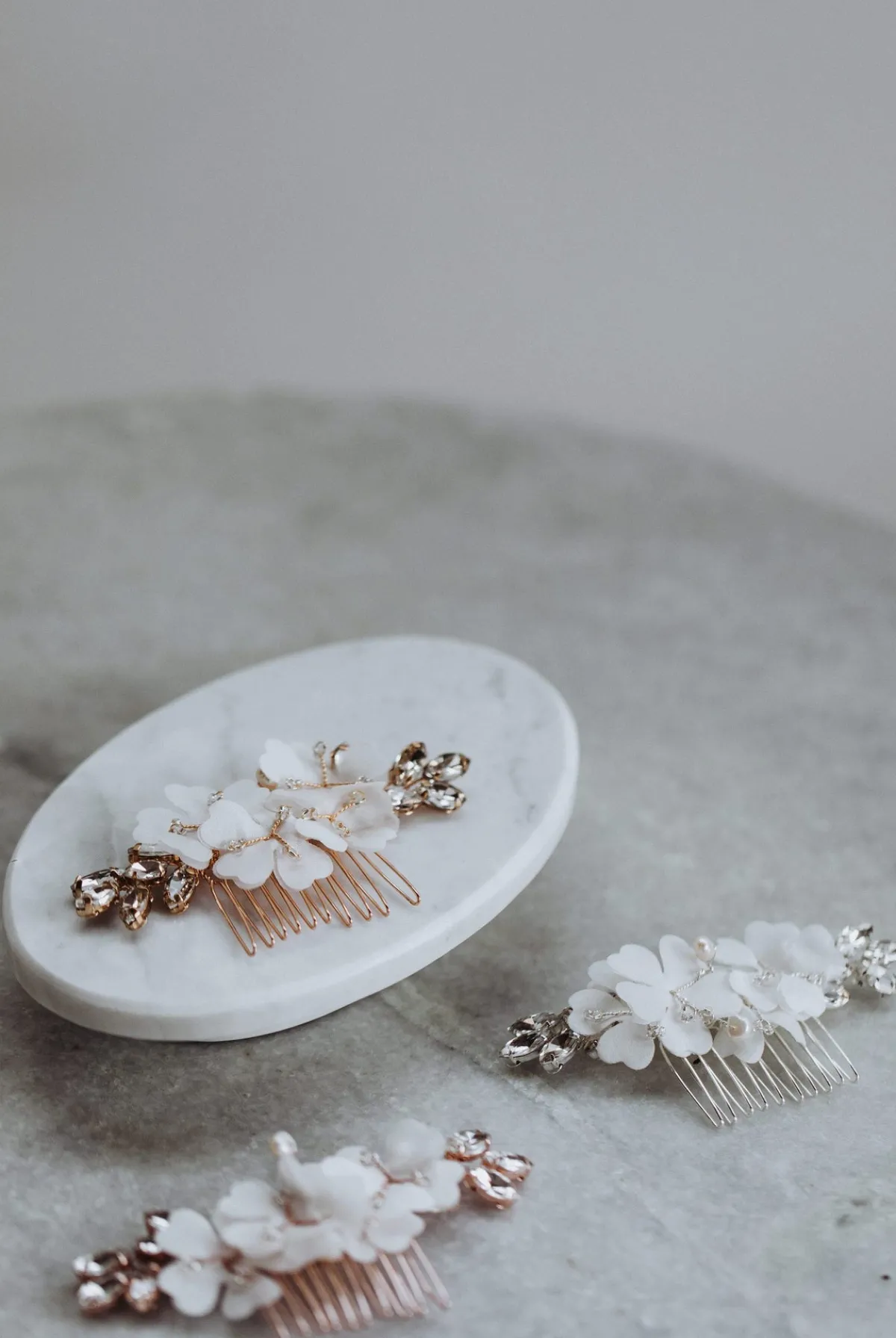 Zarte Stoffblüten und funkelnde Strasssteine in Blätter-Form zieren diesen verspielten und glamourösen Haarschmuck. Spielend leicht durch den Kamm in die Frisur einzustecken, hast du viele verschiedenen Styling-Möglichkeiten. Ob am Dutt oder seitlich in der Brautfrisur – du hast mit dem Lovely Haarkamm in jedem Fall einen tollen Eyecatcher, der deinen Look gekonnt abrundet.