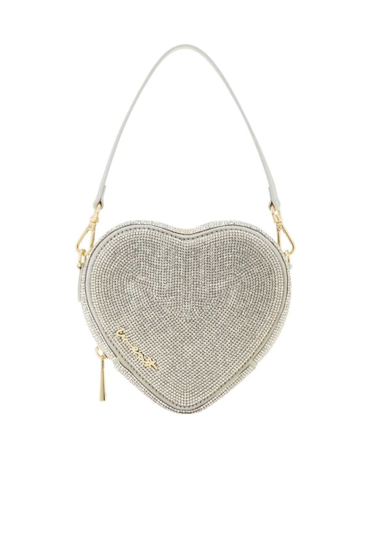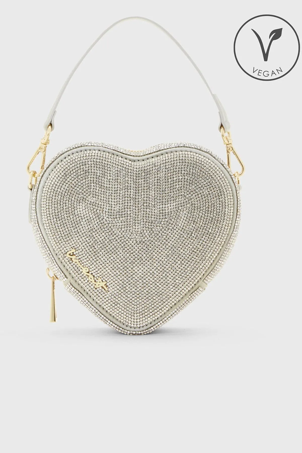 Die silberfarbene Handtasche in Herzform der Trendmarke Weat besteht aus kristallbesetztem Satin und veganem Material in Lederoptik. 14k vergoldete Verschlüsse unterstreichen das glamouröse Design. Deine Utensilien sind dank Metallreißverschluss und ein Innenfach sicher aufgehoben. Ein abnehmbarer Griff sowie eine verstellbare Kette machen die kleine Clutch zu einem besonders flexiblen Braut Accessoire.