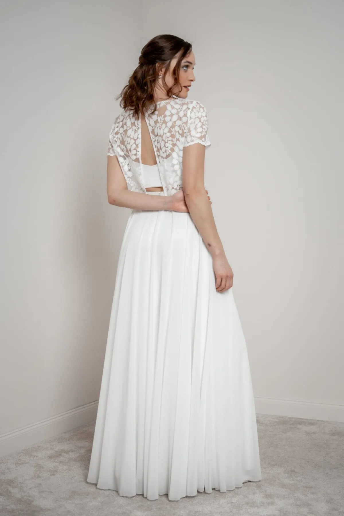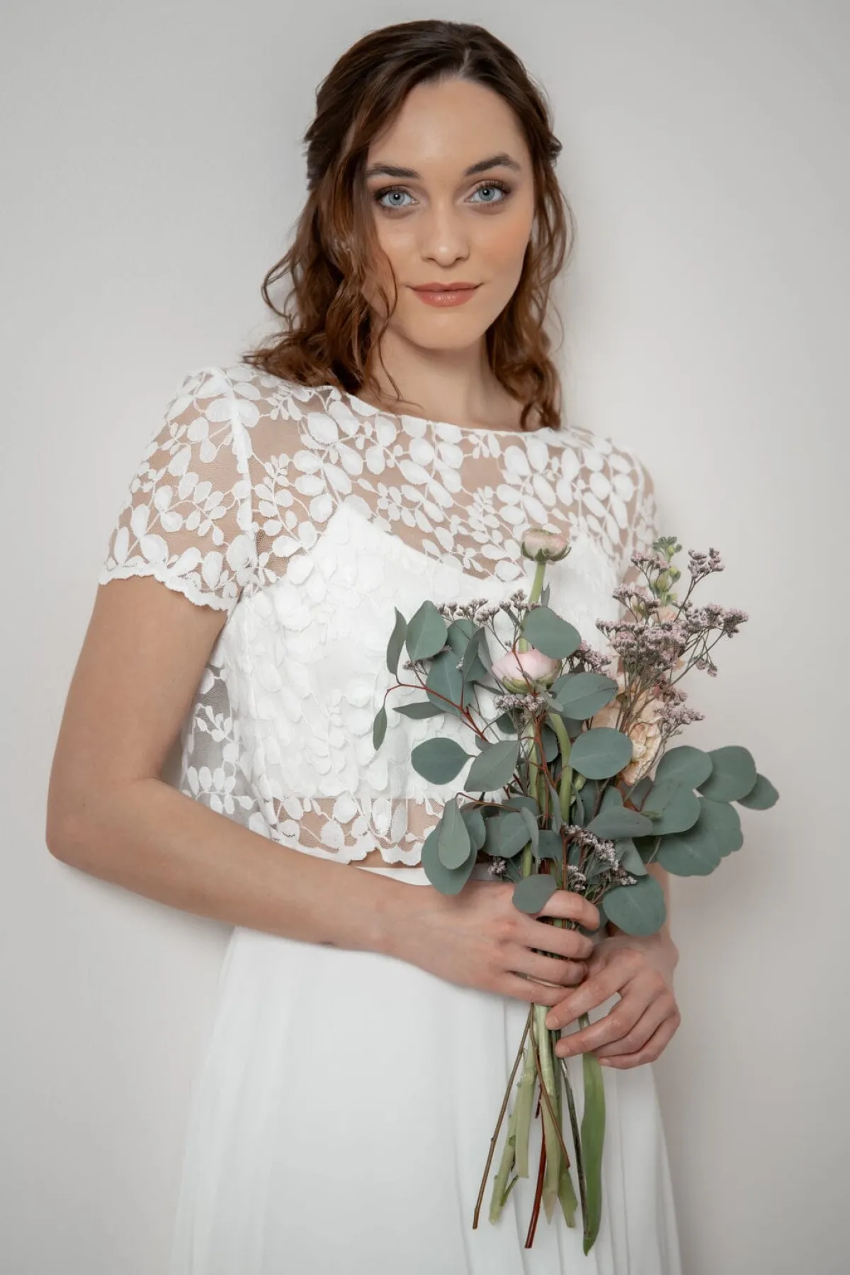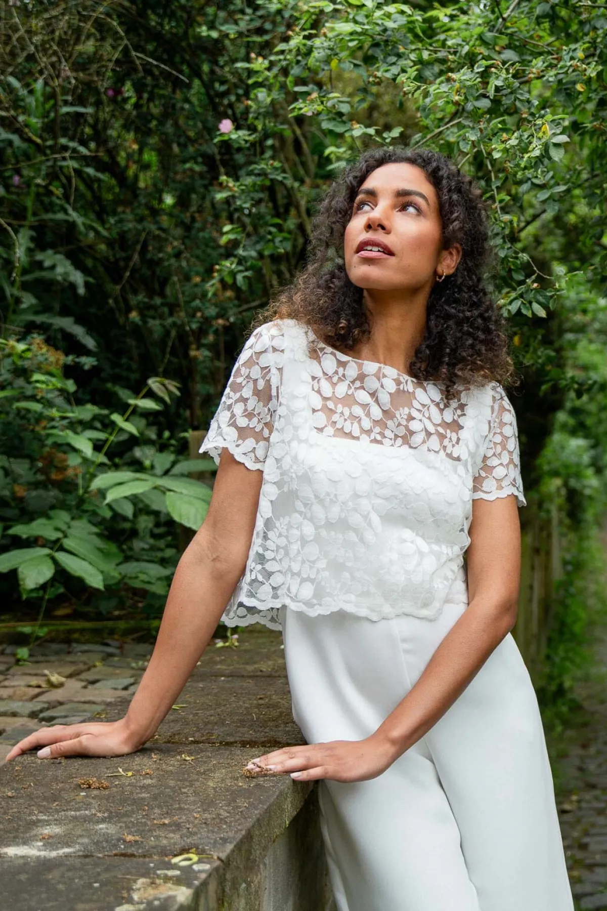 Ideal zu schlichten Röcken aus Tüll, Crêpe oder Chiffon in jeder Länge sowie puristischen Hosenmodellen. Nach der Hochzeit ein charmanter Hingucker zur Lieblingsjeans.