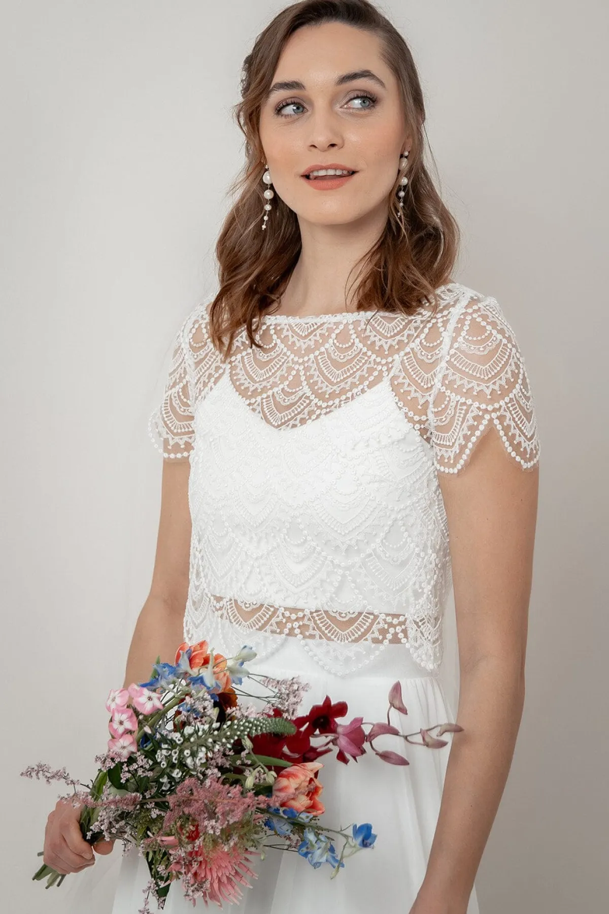 Braut Top im Jäckchen-Stil mit Rücken-Knopfleiste