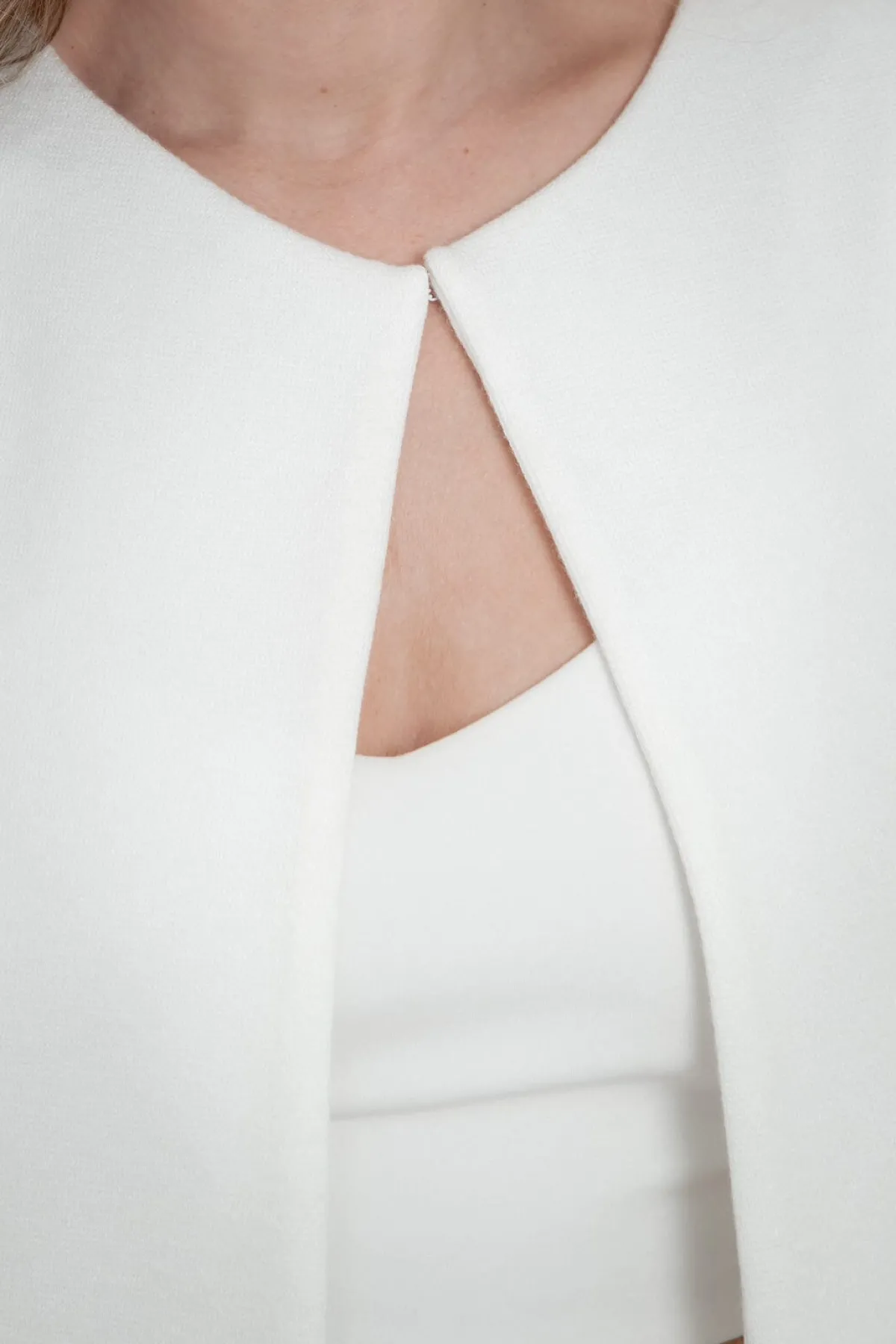 Nach dem großen Tag als zeitloses Basic im Alltag zu tragen. Geschlossen wird der Cardigan vorne mit einem Haken- und Ösenverschluss.