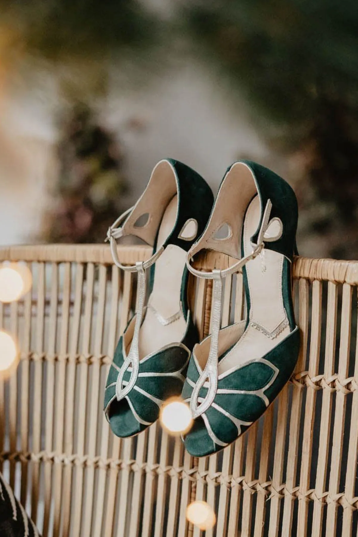 Das satte, dunkelgrüne Wildleder verleiht dem Schuh eine zeitlose Eleganz, die sowohl zu opulenten Vintage Braut Looks im Stil der 20-er oder 30-er Jahre, aber auch zu moderner Abendgarderobe passt. Und auch für eine Hochzeit im trendigen Greenery Style ist der Schuh ein gelungenes Accessoire, das deine Brautgarderobe stilvoll abrundet.