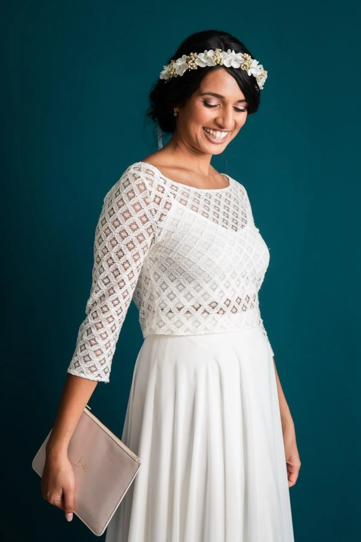 Eine schlichte aber elegante Pouch, mit schön geschwungenem „Bride“-Schriftzug im Handlettering-Stil. Das funkelnde Metallic White macht die Pouch zum idealen Braut Accessoire. Sie eignet sich außerdem als tolle Clutch zum Junggesellinnenabschied und ist nach dem großen Tag ein schönes, ganz persönliches Andenken. Die Pouch wird mit Reißverschluss geschlossen. Sie besteht aus veganem Leder und ist eine schöne Alternative zu Accessoires aus tierischen Produkten.