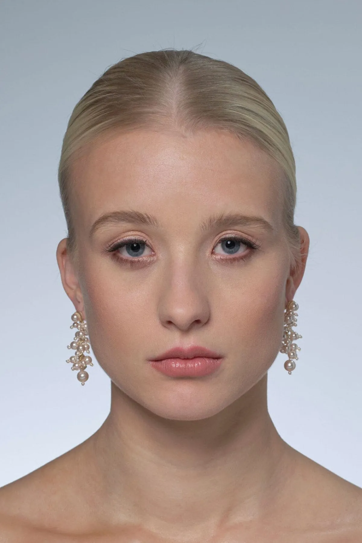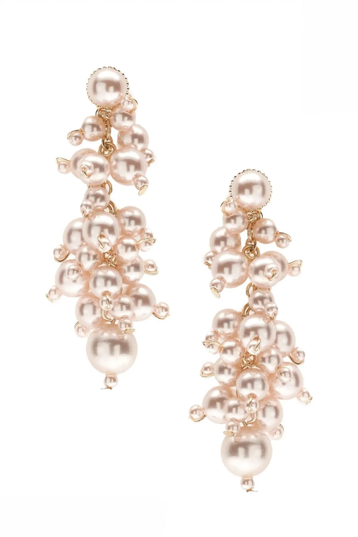 Romantische Ohrstecker mit Anhängern aus unterschiedlich großen Kunstperlen in Rosé mit schimmerndem Finish.