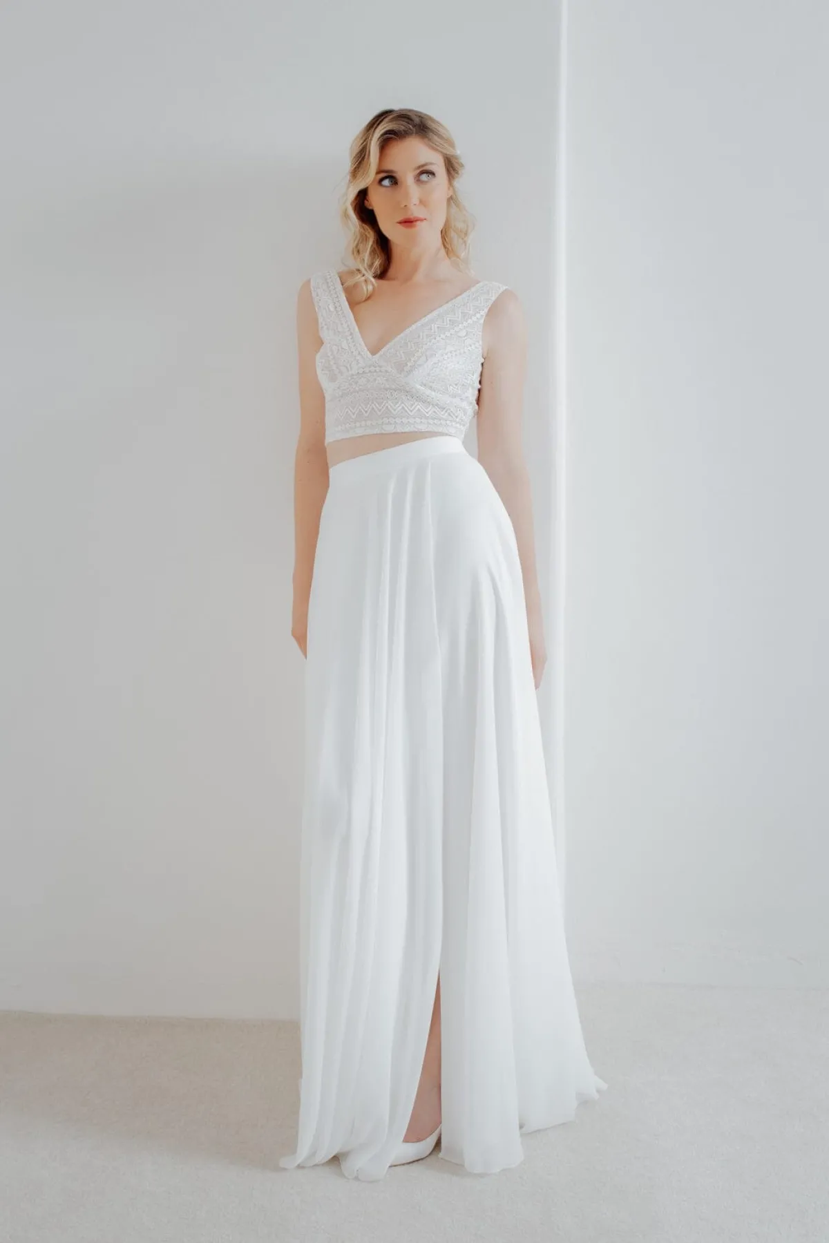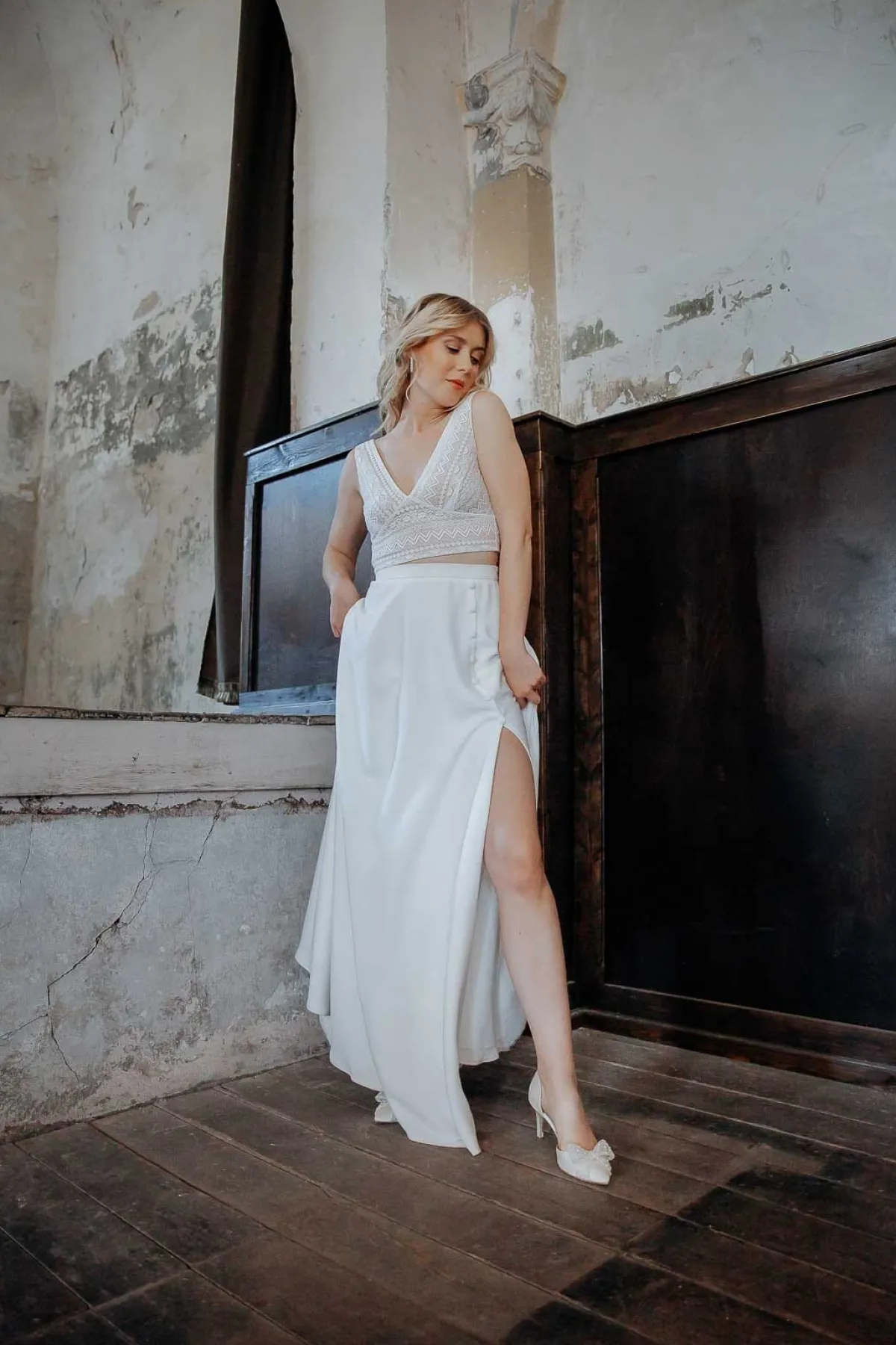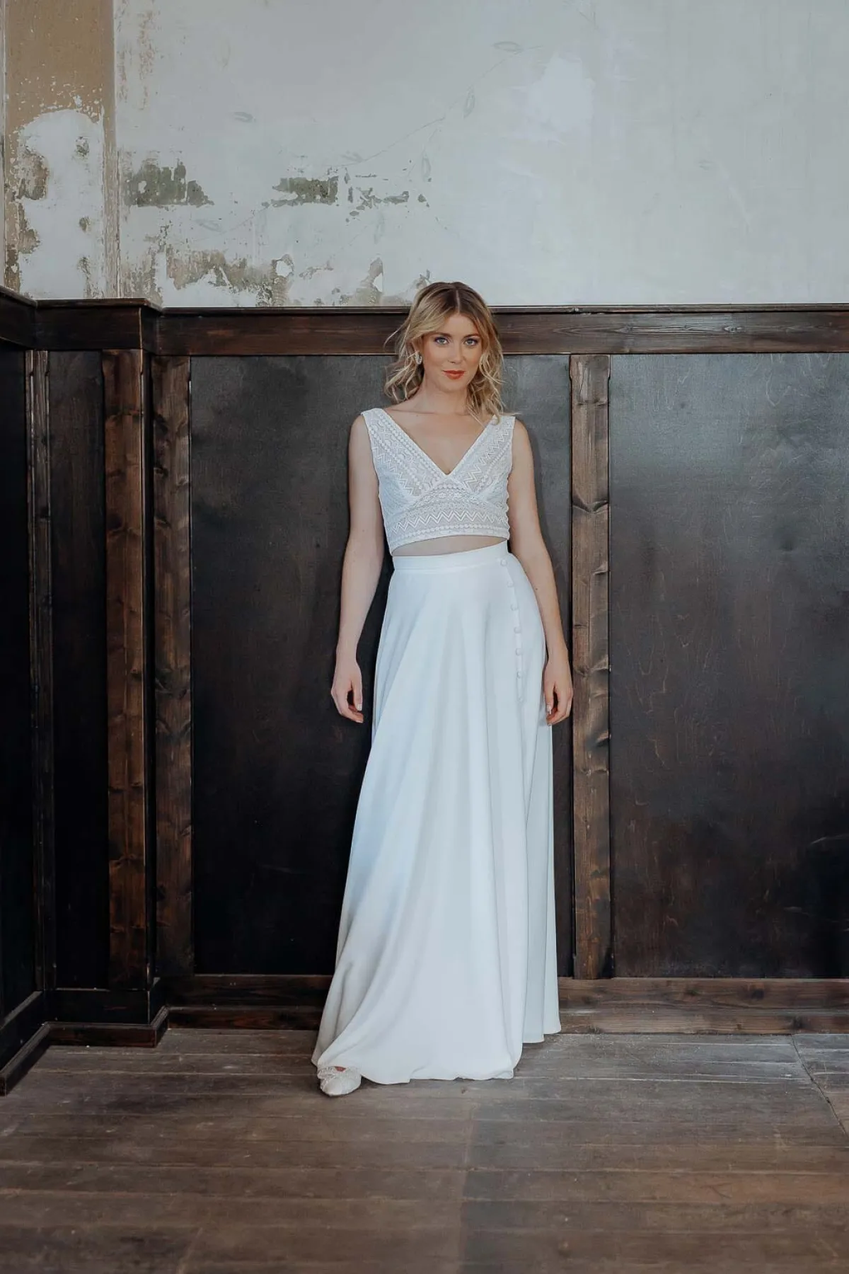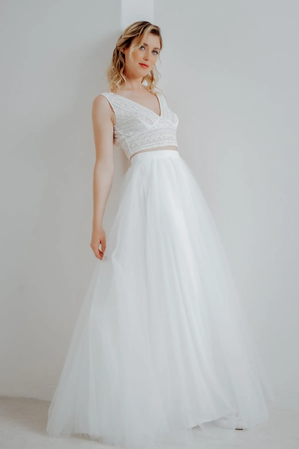 Halb-transparentes Braut Top aus Boho-Spitze mit eckigem Rückenausschnitt