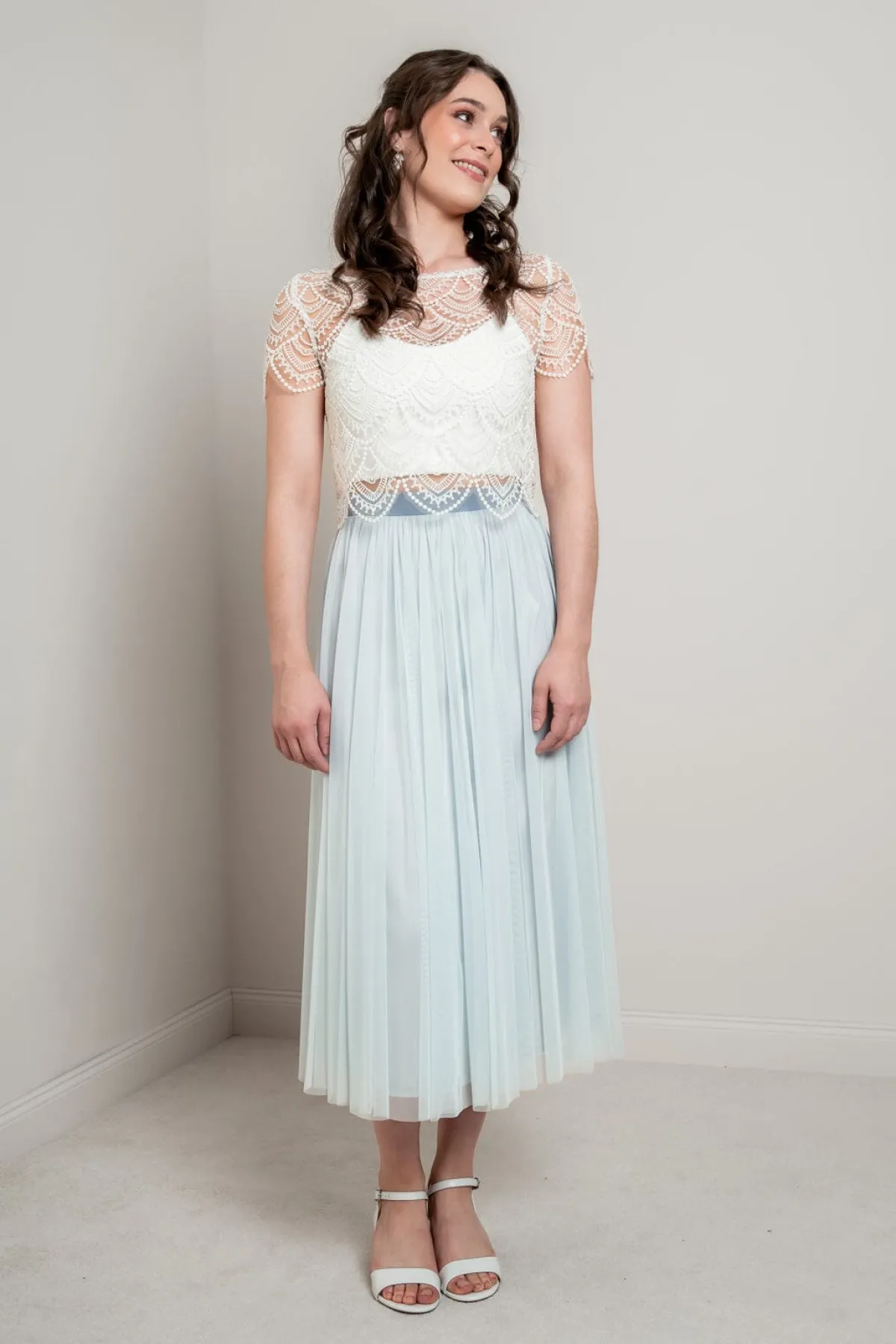 Midi-Braut Rock aus fließendem, hellblauen Tüll