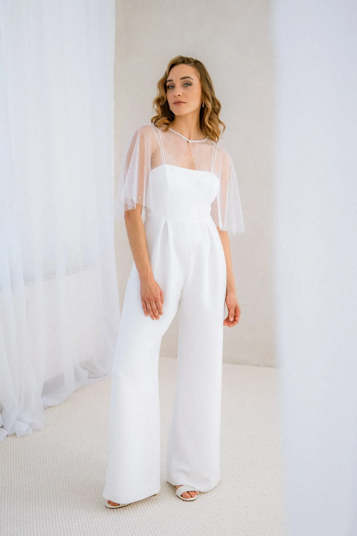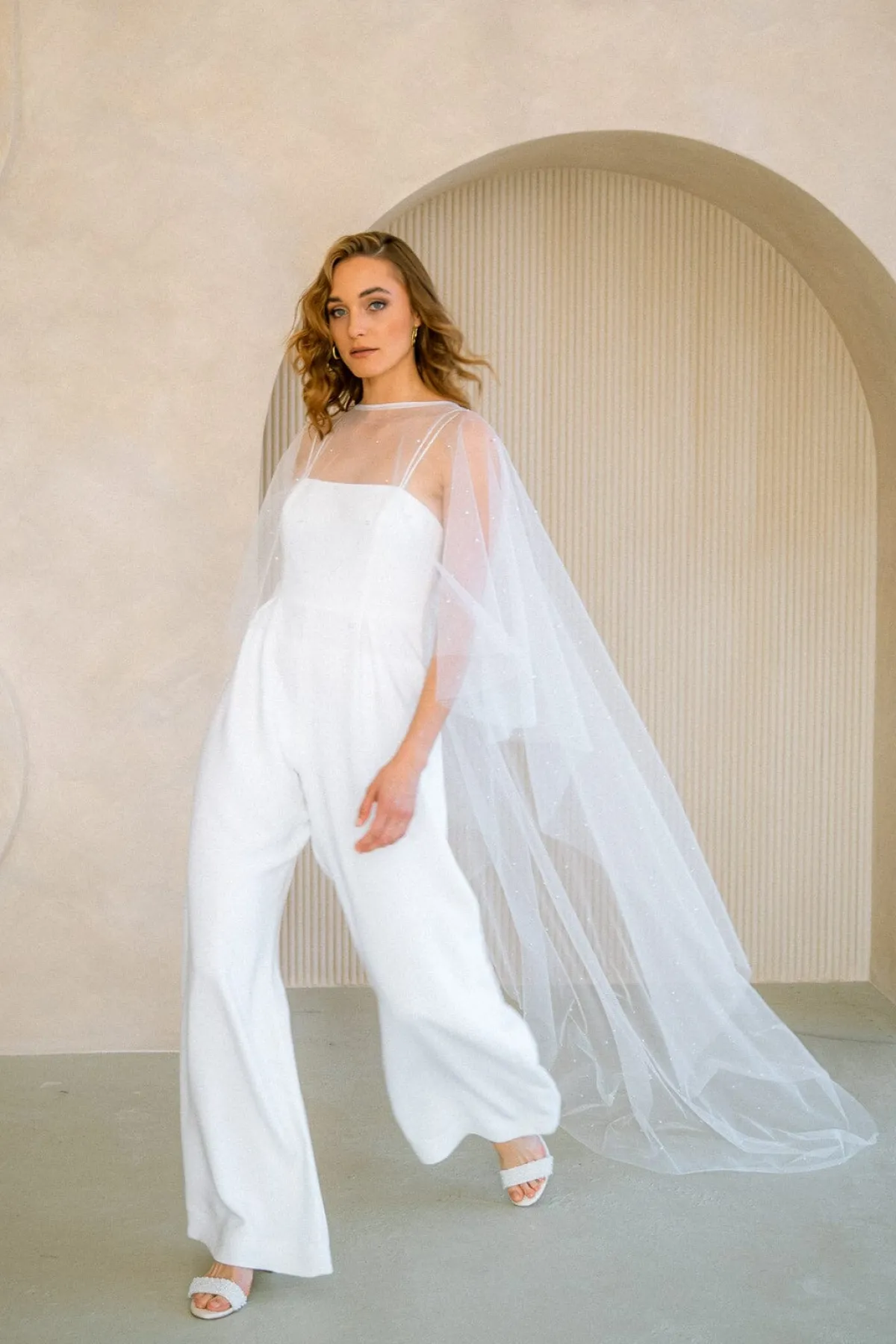Style den Jumpsuit mit einem transparenten Spitzenoberteil, einem Cardigan oder einem Cape deiner Wahl oder trage ihn im Sommer ganz clean ohne Topper.