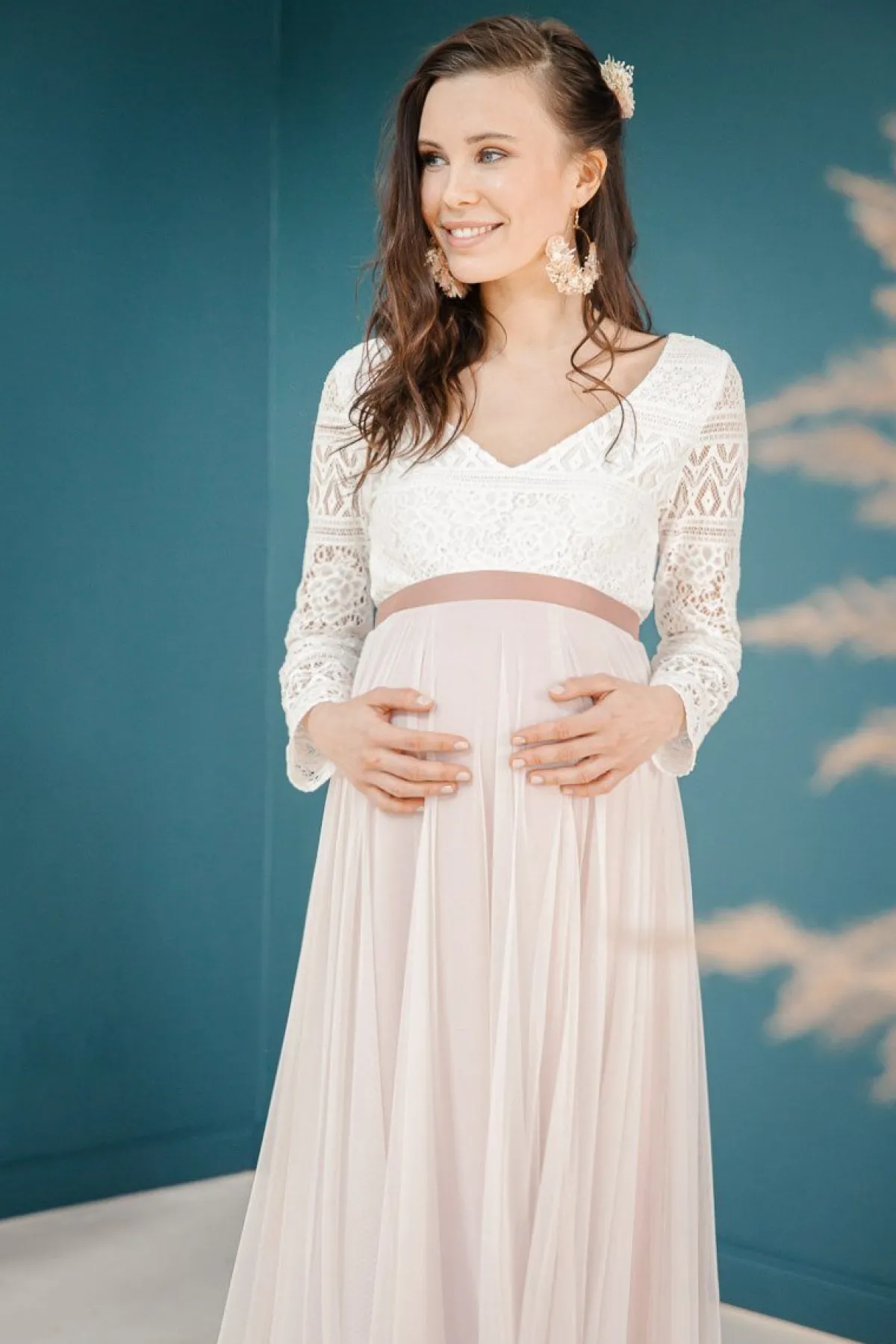 Die Wadenlänge verleiht eine feminine und super elegante Silhouette ohne aufzutragen. Der Umstandsrock ist aus Softtüll und elastischem Futter handgenäht und sorgt für allerbesten Tragekomfort für Mutter und Kind – der Gummibund passt sich der Körperform an ohne einzuengen oder einzuschneiden.