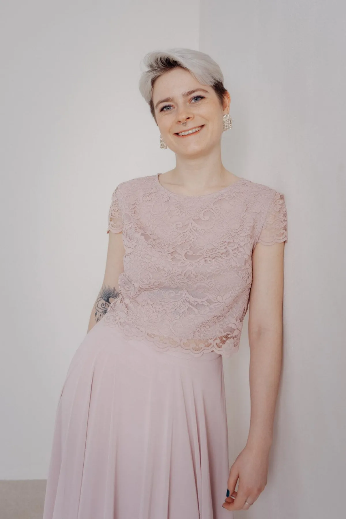 Charmantes Top in zartem Rosé für Hochzeitsgäste, Brautjungfer oder Trauzeugin.