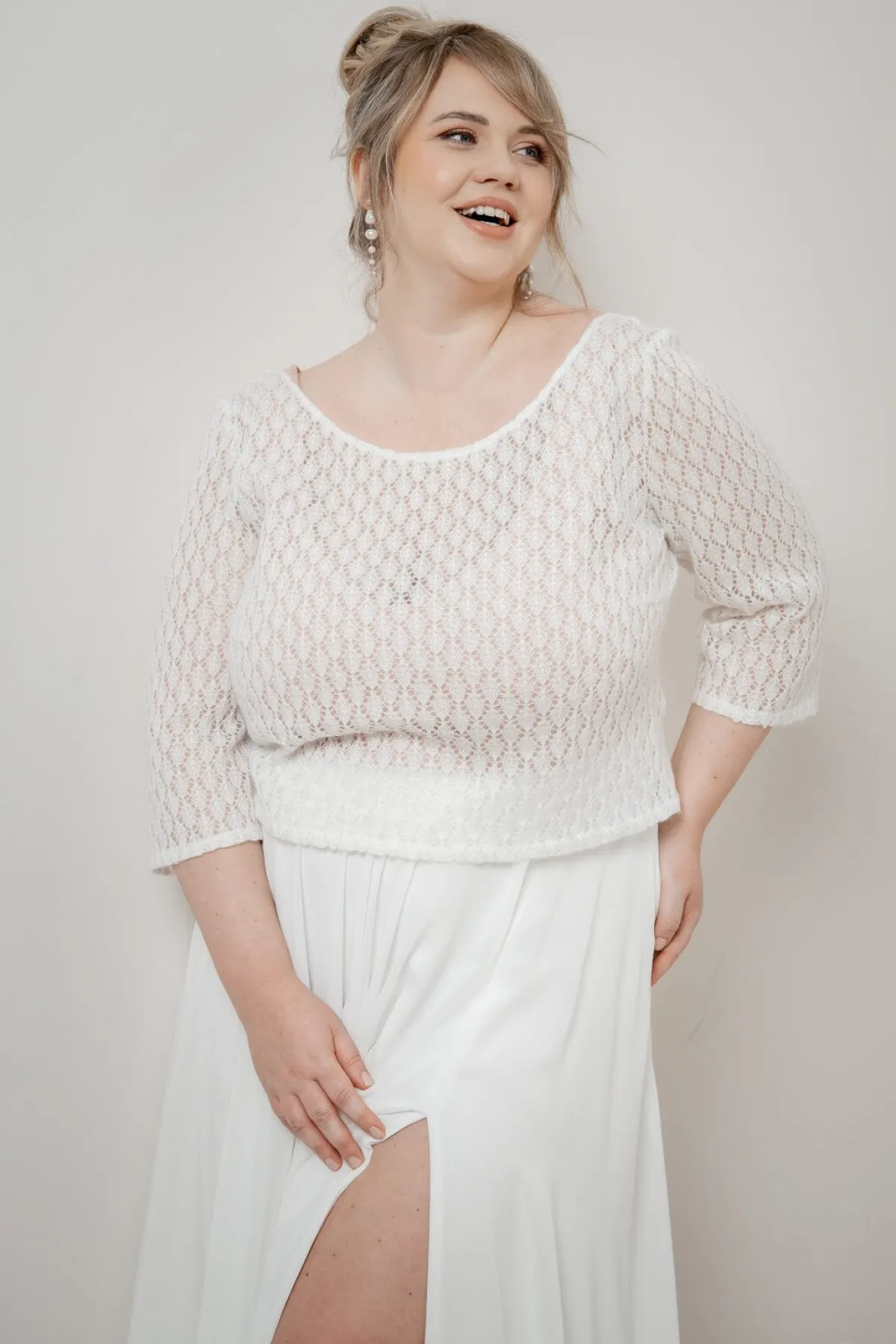 Ivoryfarbenes Plus Size-Top mit Rückendetail