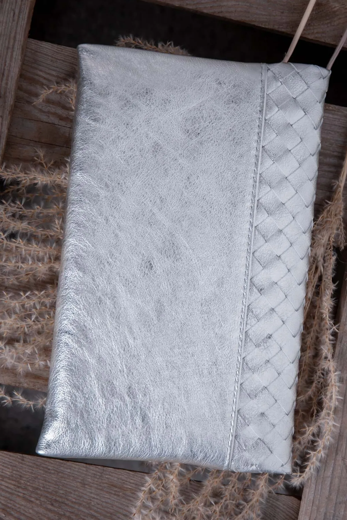 Die Handtasche aus hochwertigem italienische Rindsleder ist auf der Vorderseite mit stylishem Flechtdesign in funkelndem Weißgold versehen und garantiert dir einen großen Auftritt – zu jedem Anlass!