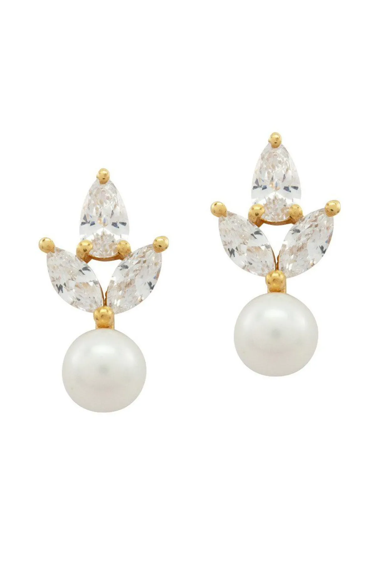 Ohrringe aus Zirconia Kristallen mit Perlen Detail in Gold oder Silber